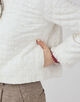 ポリエステルの中綿を抱かせて刺繍を施しており、軽さと暖かさを感じていただけます。