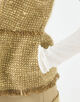 この製品はデザイン的に生地をほどいて、フリンジ状にしています。