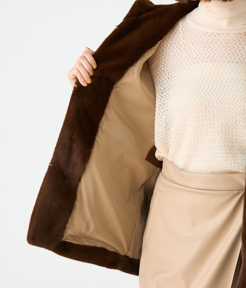 リサイクルポリエステル糸を使用した上質なエコファー素材のアウター。