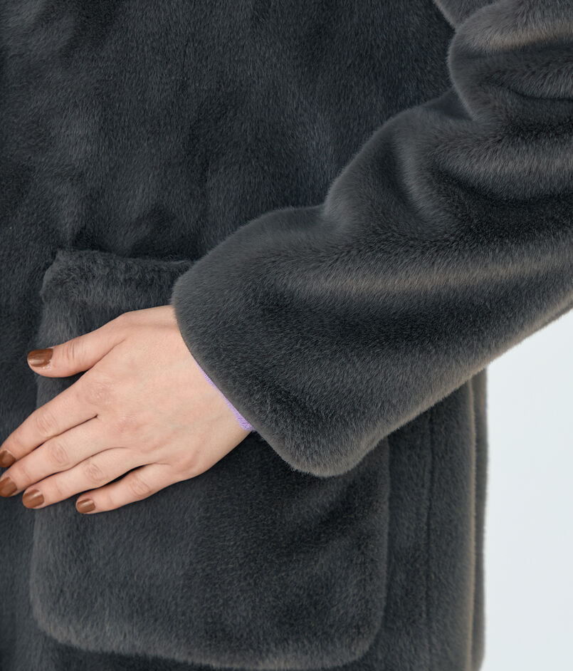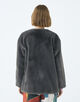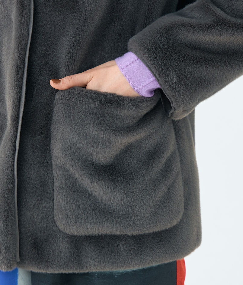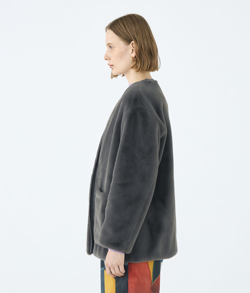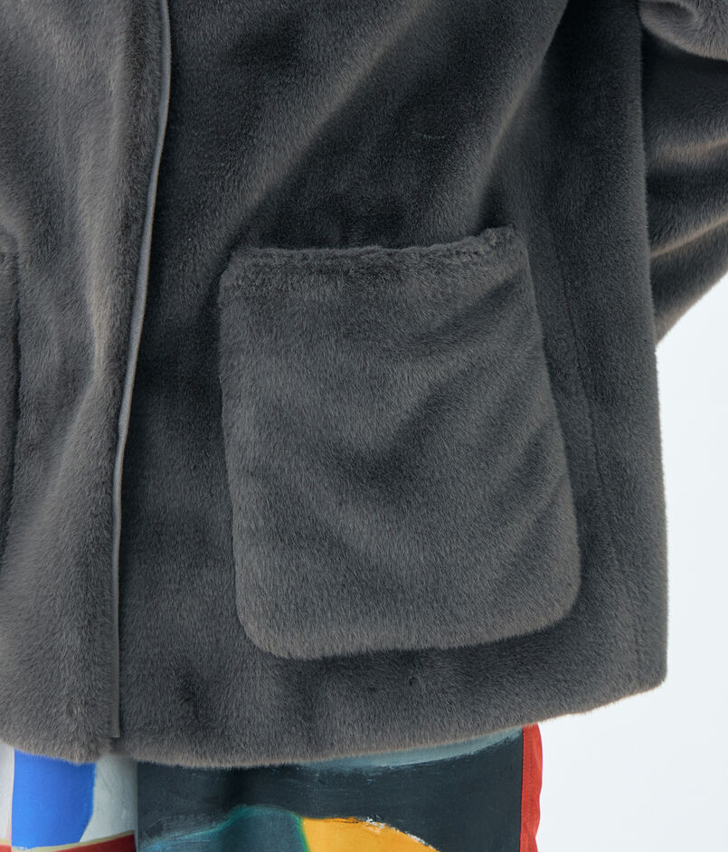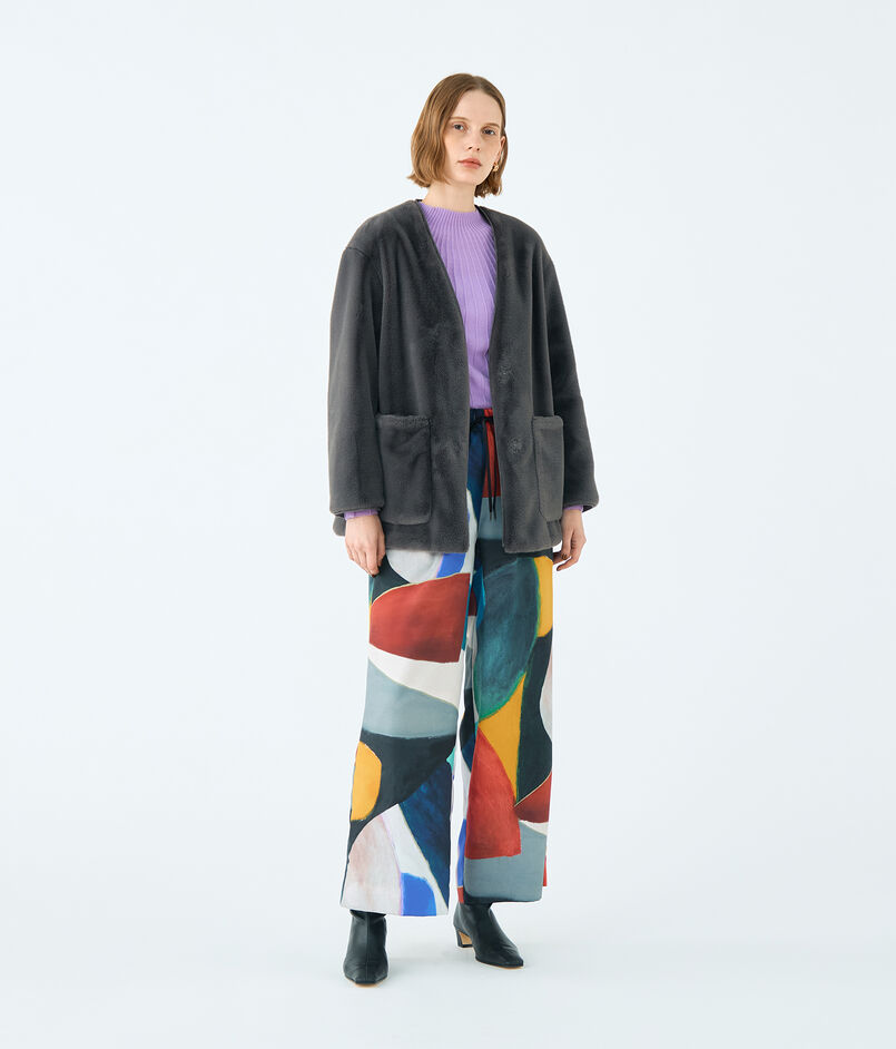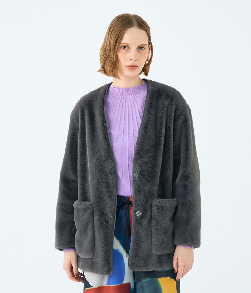 リサイクルポリエステル糸を使用した上質なエコファー素材のアウター。