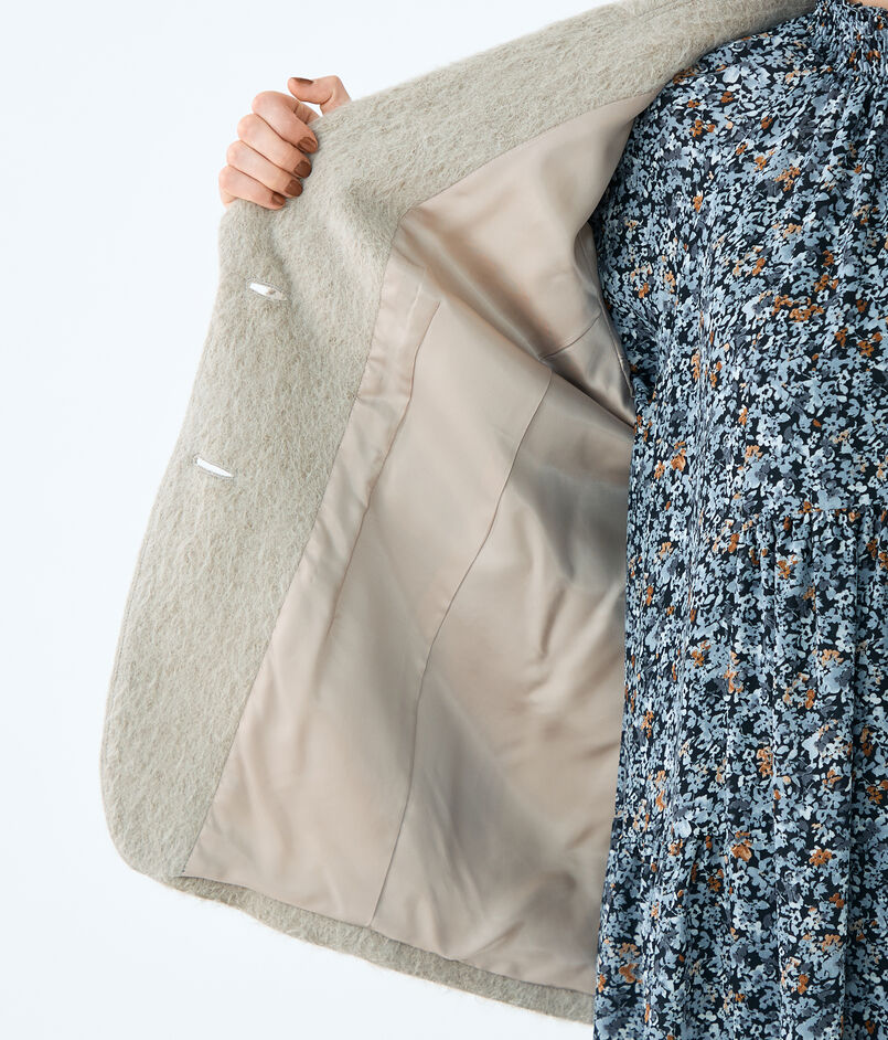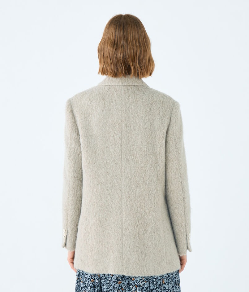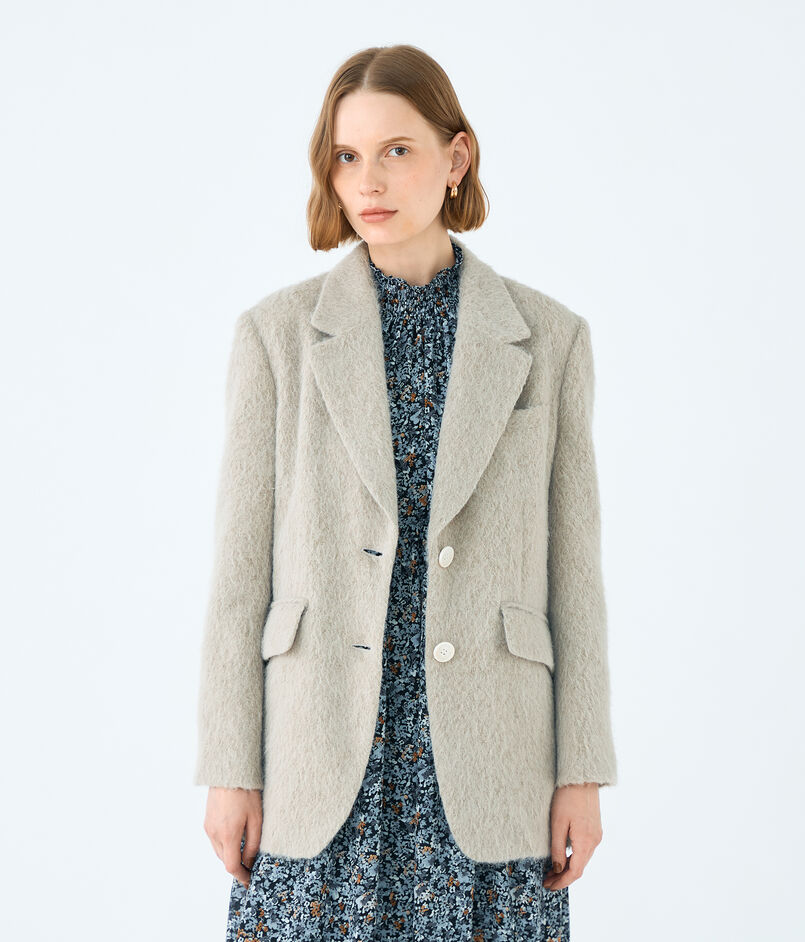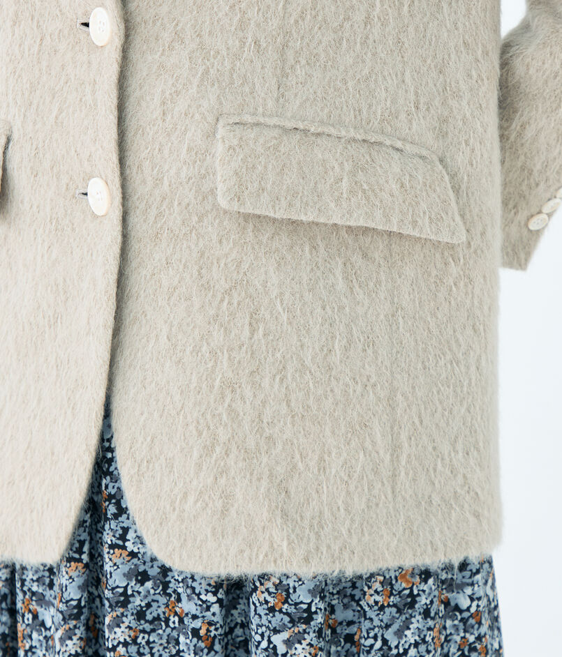 上質なアルパカの糸を使用した毛足感が特徴のシャギー素材のジャケット。
