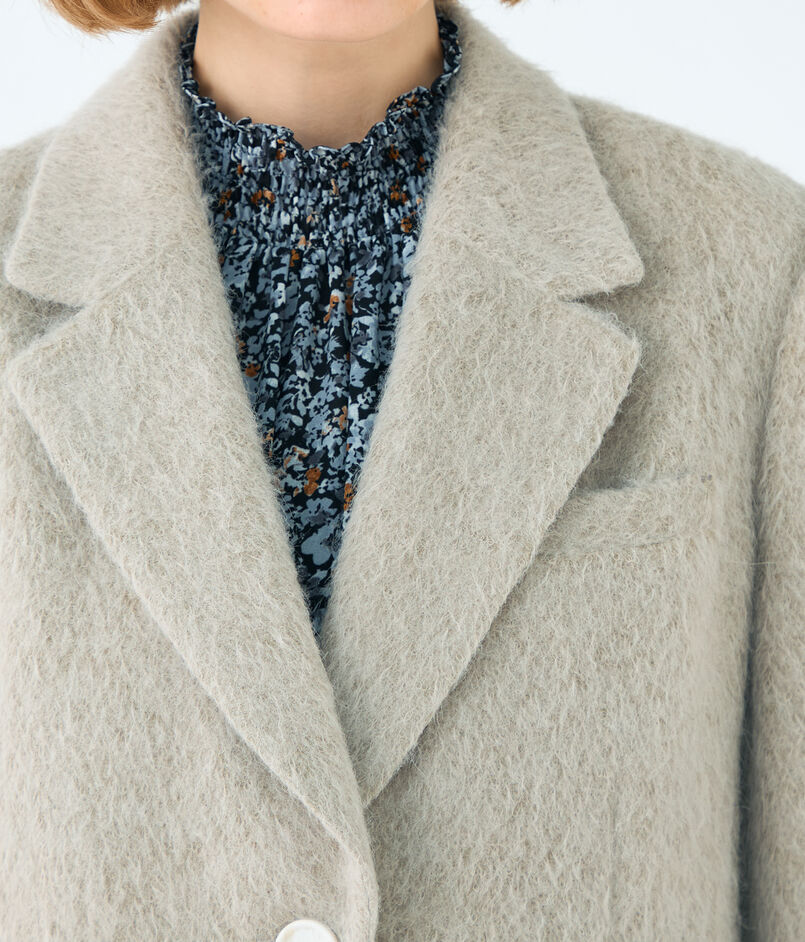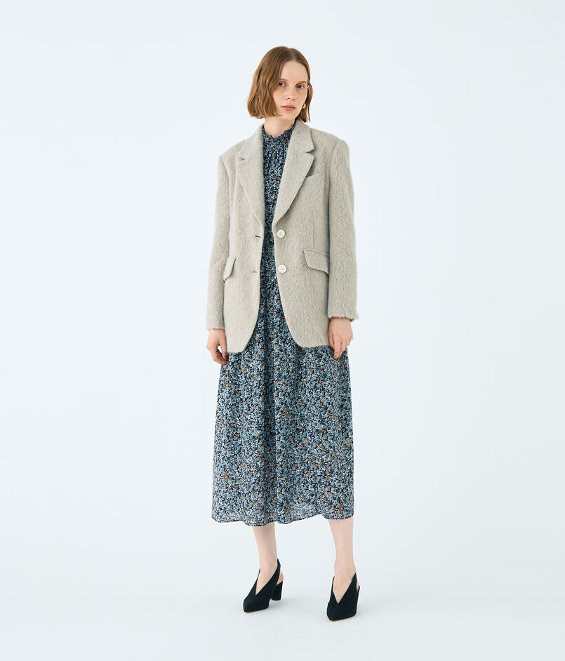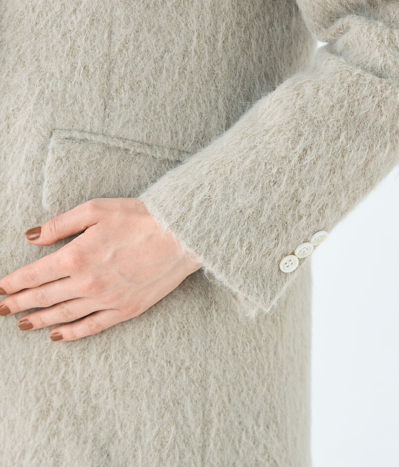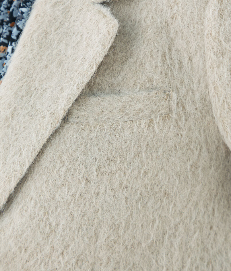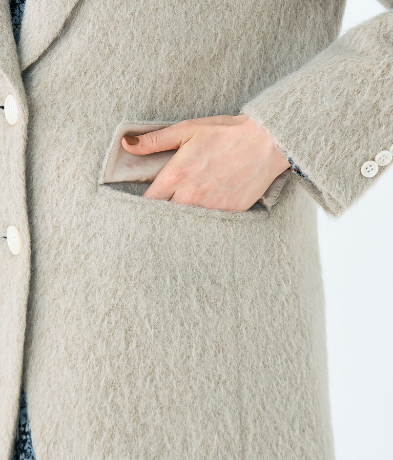 上質なアルパカの糸を使用した毛足感が特徴のシャギー素材のジャケット。