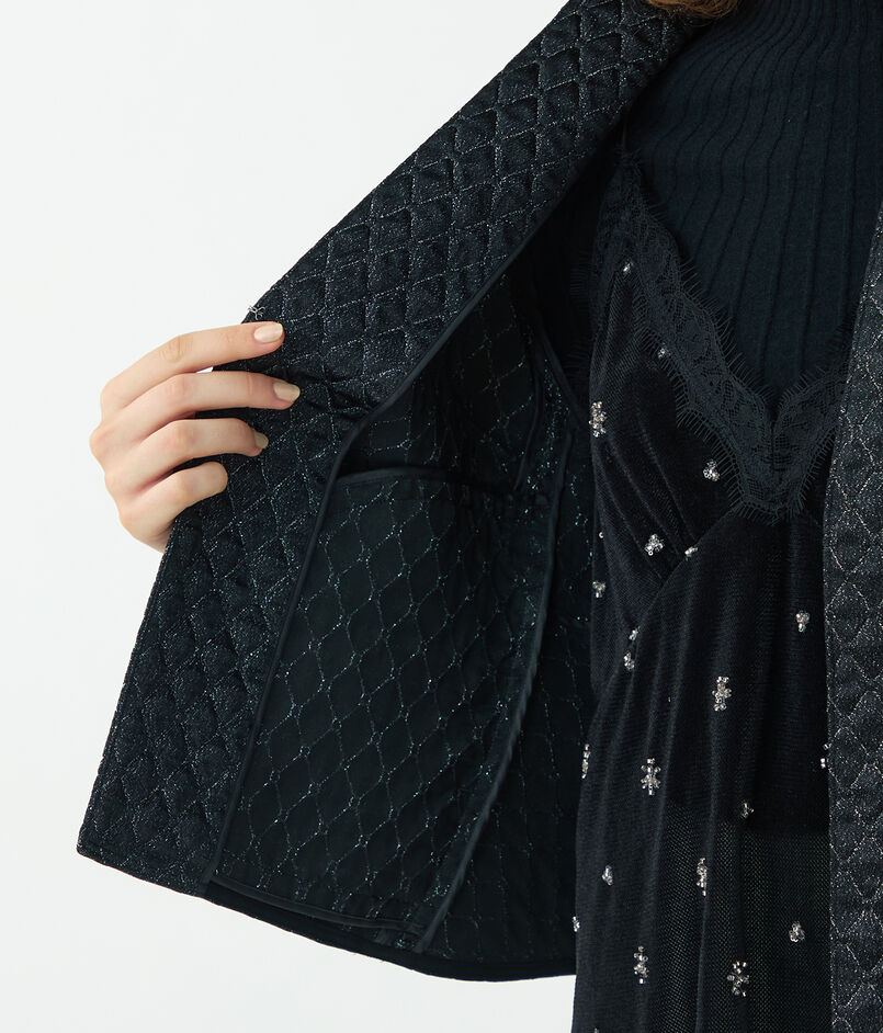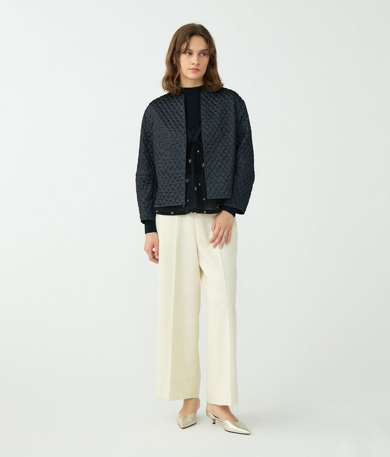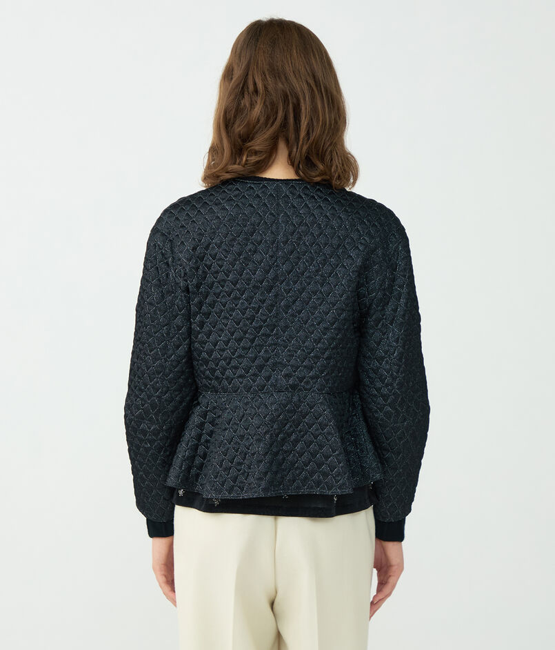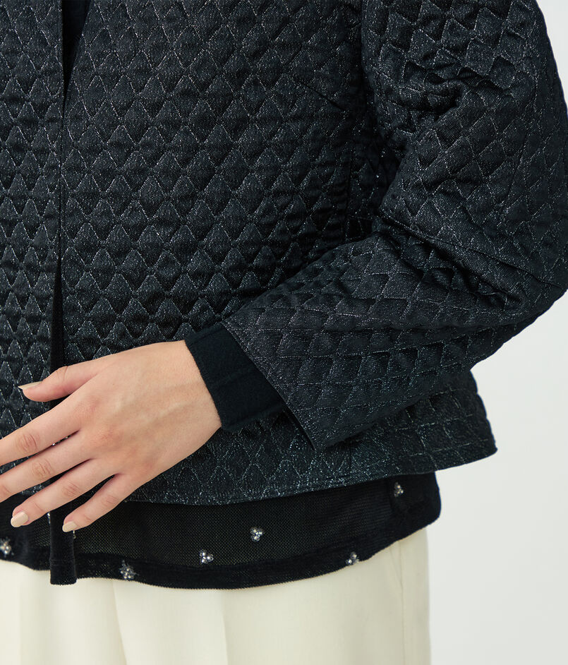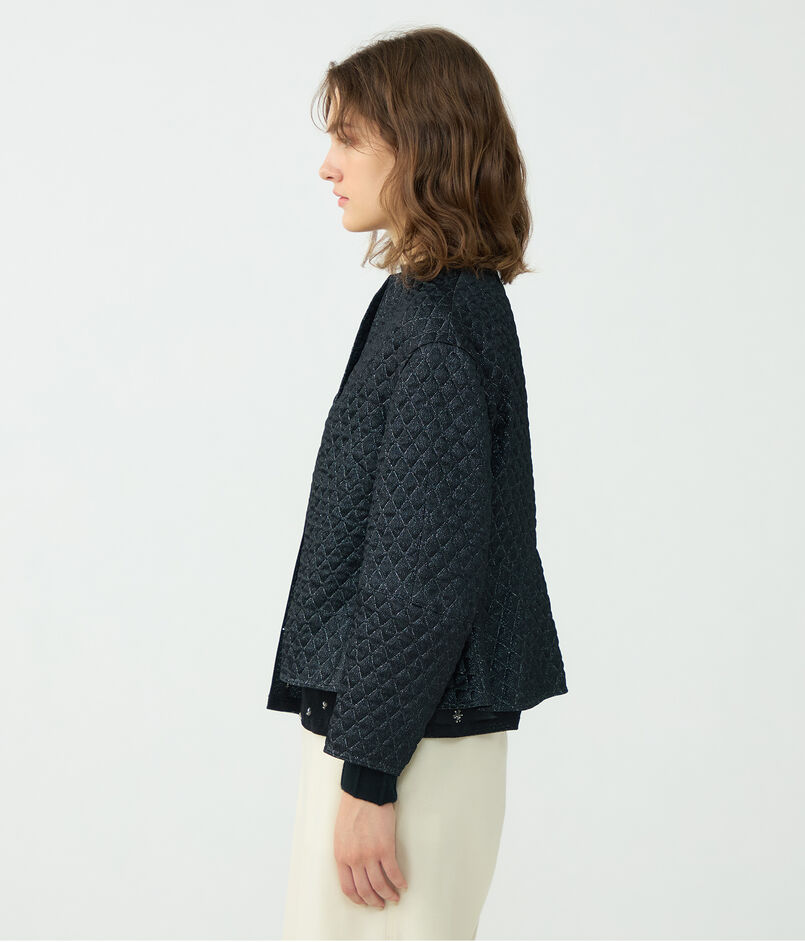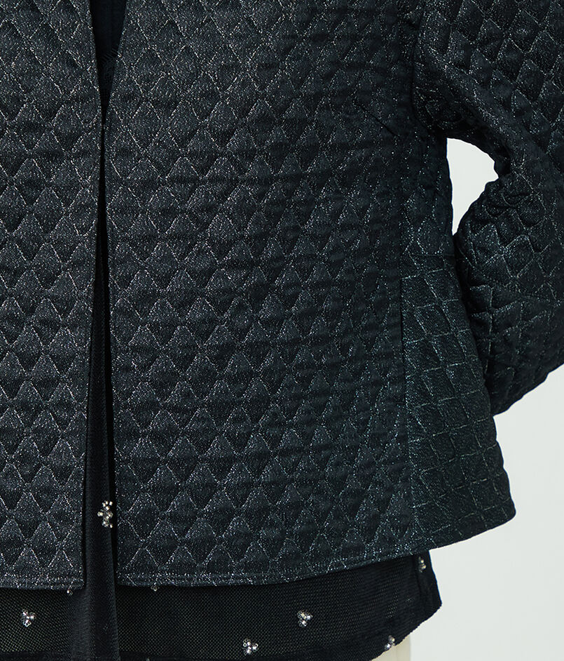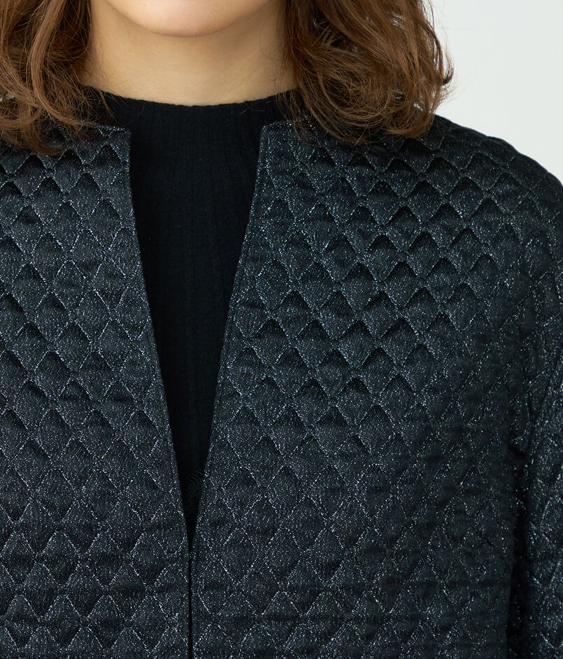 特殊な織り方をすることでキルティングのような特徴的な立体感のある表情に仕上げたフクレジャカード素材を使用したジャケット。