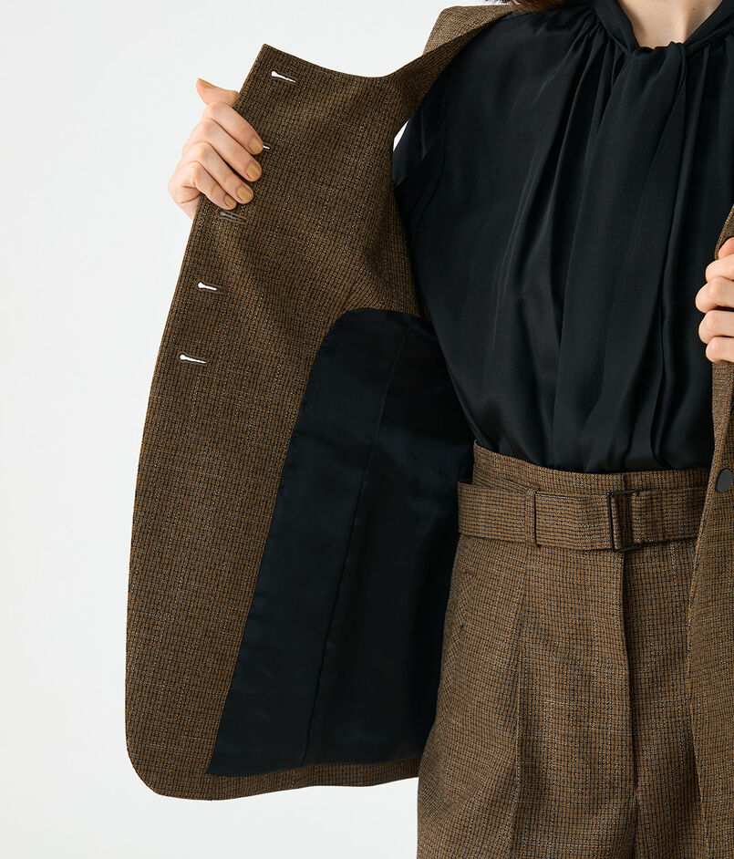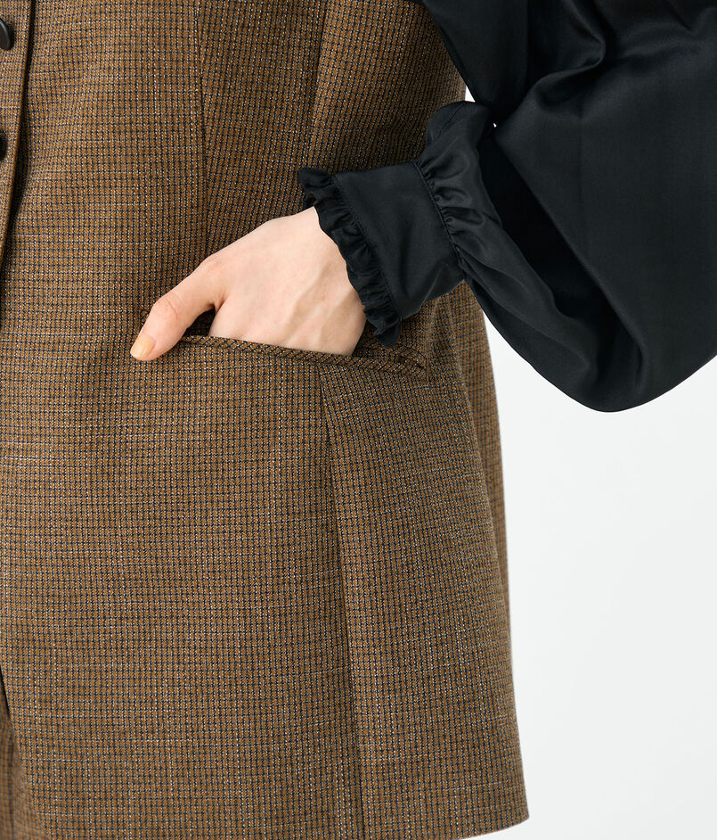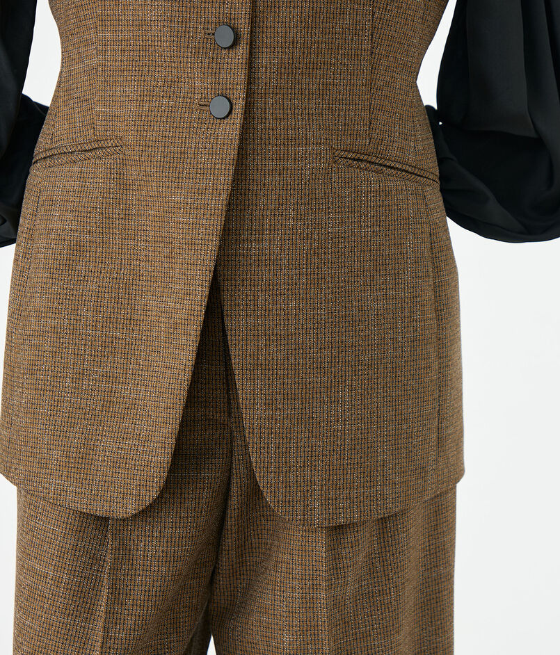 杢糸を使用した深みを感じるウィンドーペン柄が個性的な印象のセットアップシリーズ。