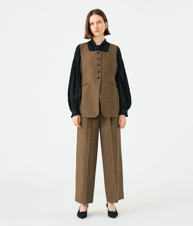 同素材のジャケット(商品番号:11-07-54-07933)やパンツ(商品番号:11-04-54-04932)とのマスキュリンなセットアップスタイルもおすすめ。