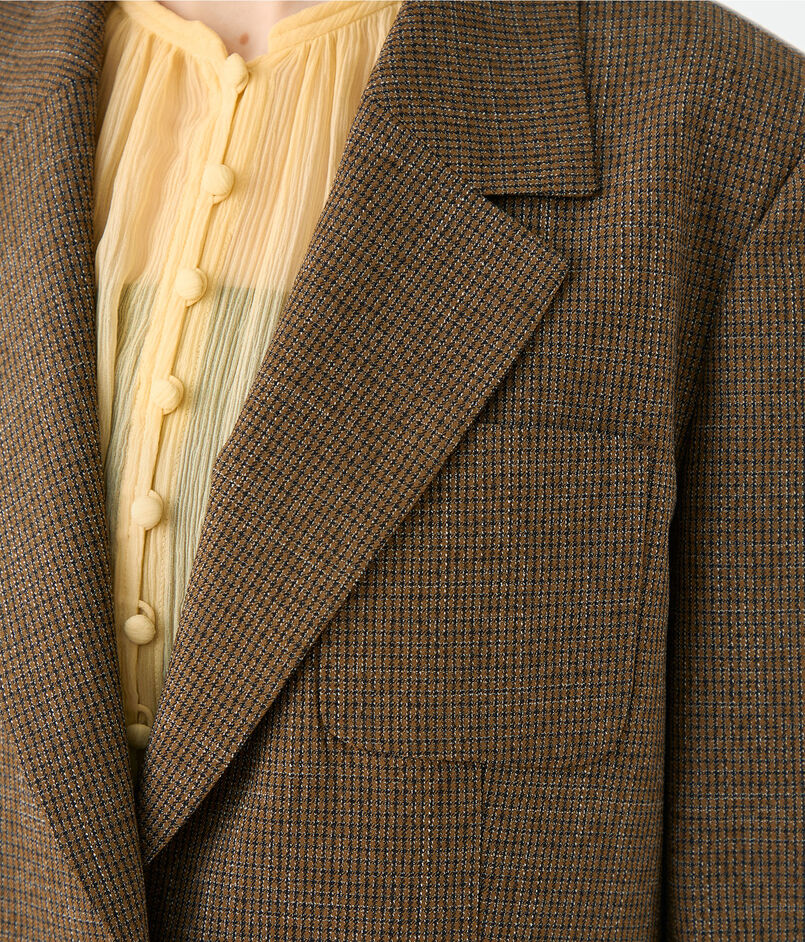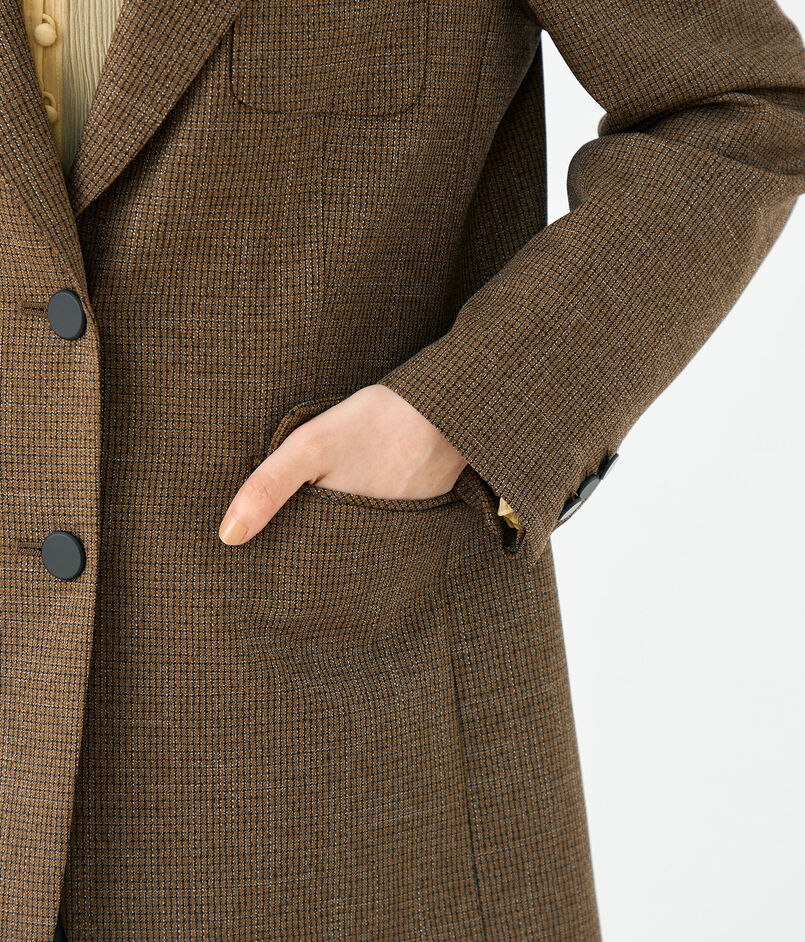 杢糸を使用した深みを感じるウィンドーペン柄が個性的な印象のセットアップシリーズ。