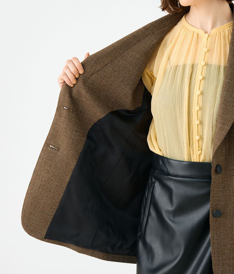 スカートやワンピースを合わせたミックス感のあるコーディネートはもちろん、同素材のジレ(商品番号:11-07-54-07932)とパンツ(商品番号:11-04-54-04932)を合わせたマスキュリンなセットアップスタイルもおすすめ。