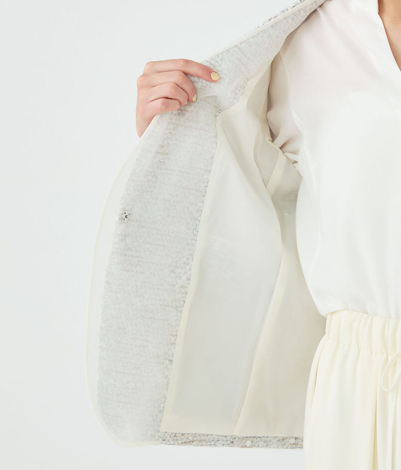 ツイードとチュール素材のミックス感が華やかな印象のジャケット。