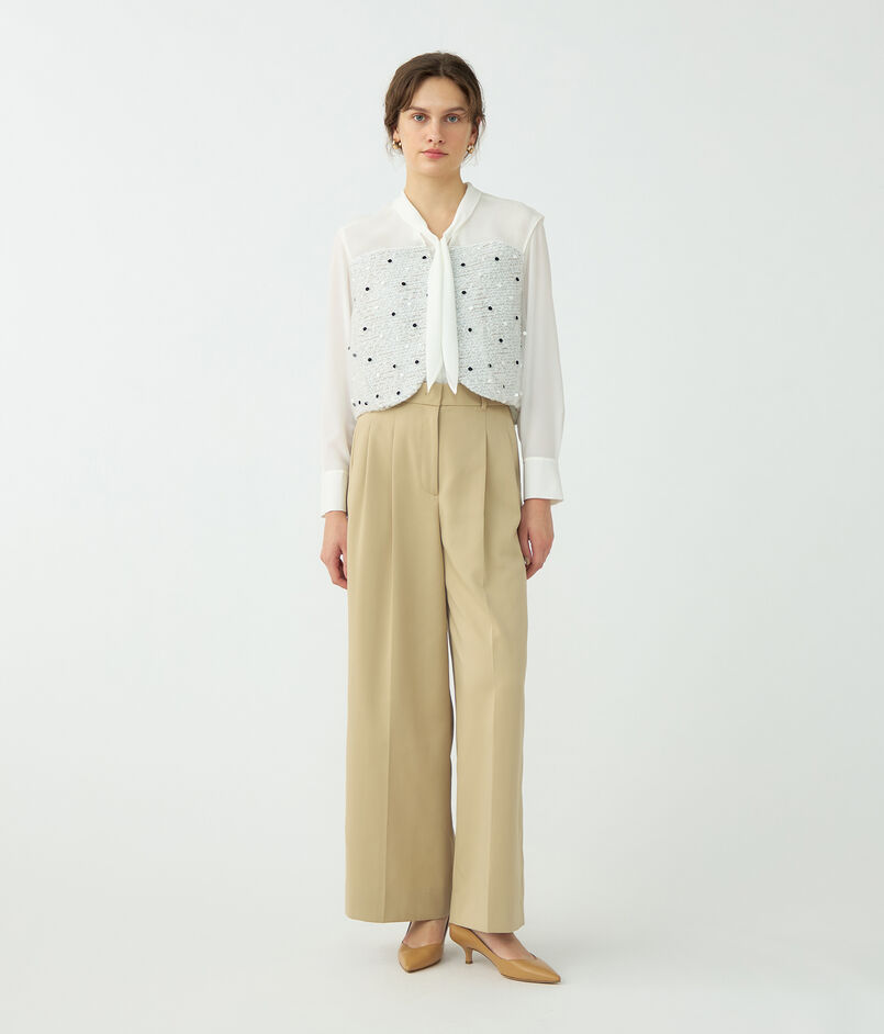 ブラウスや細身のニットなど、合わせるインナーを変えることで寒い時期から春まで長いシーズンに活躍。