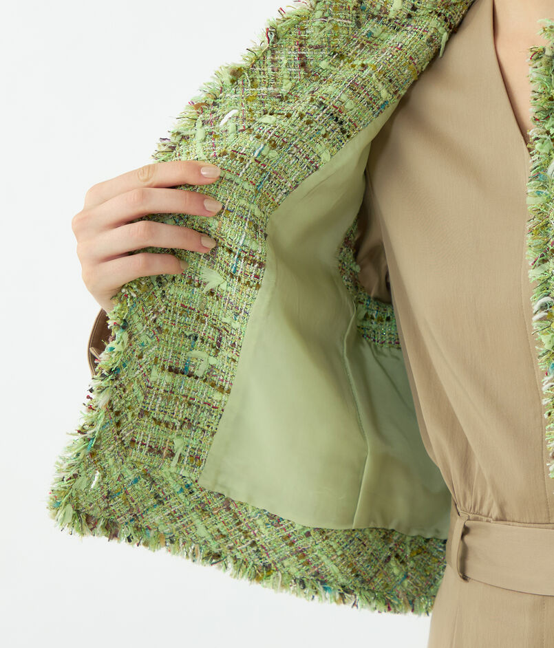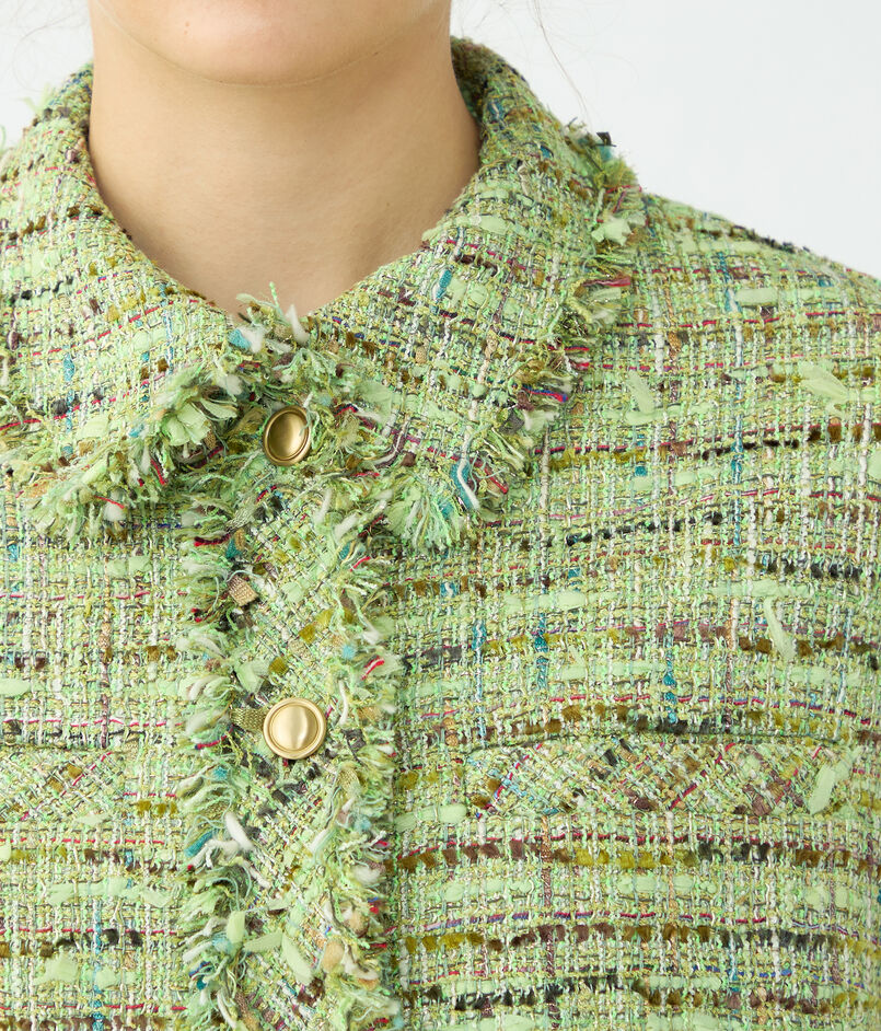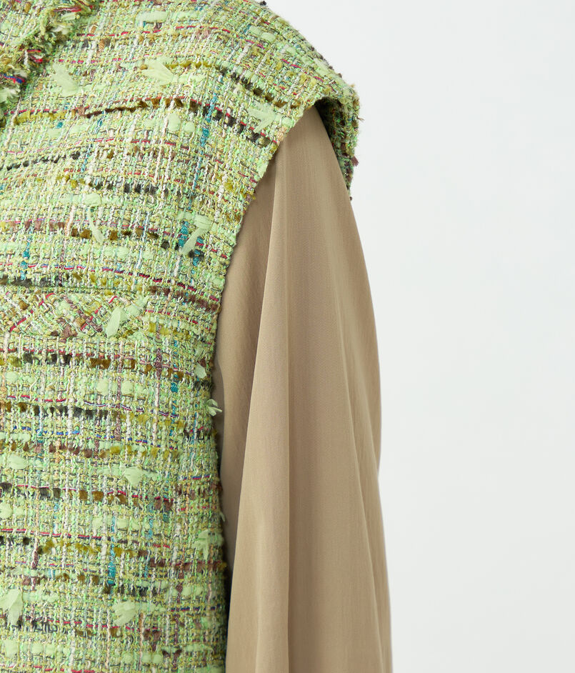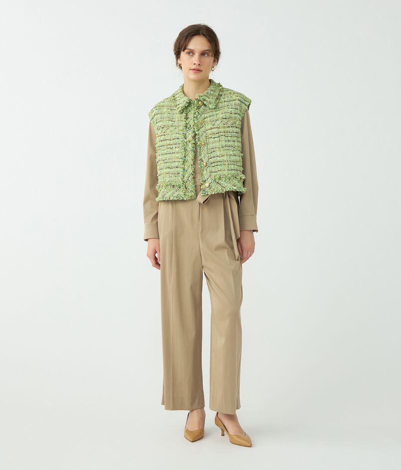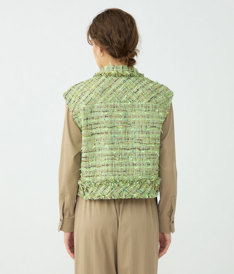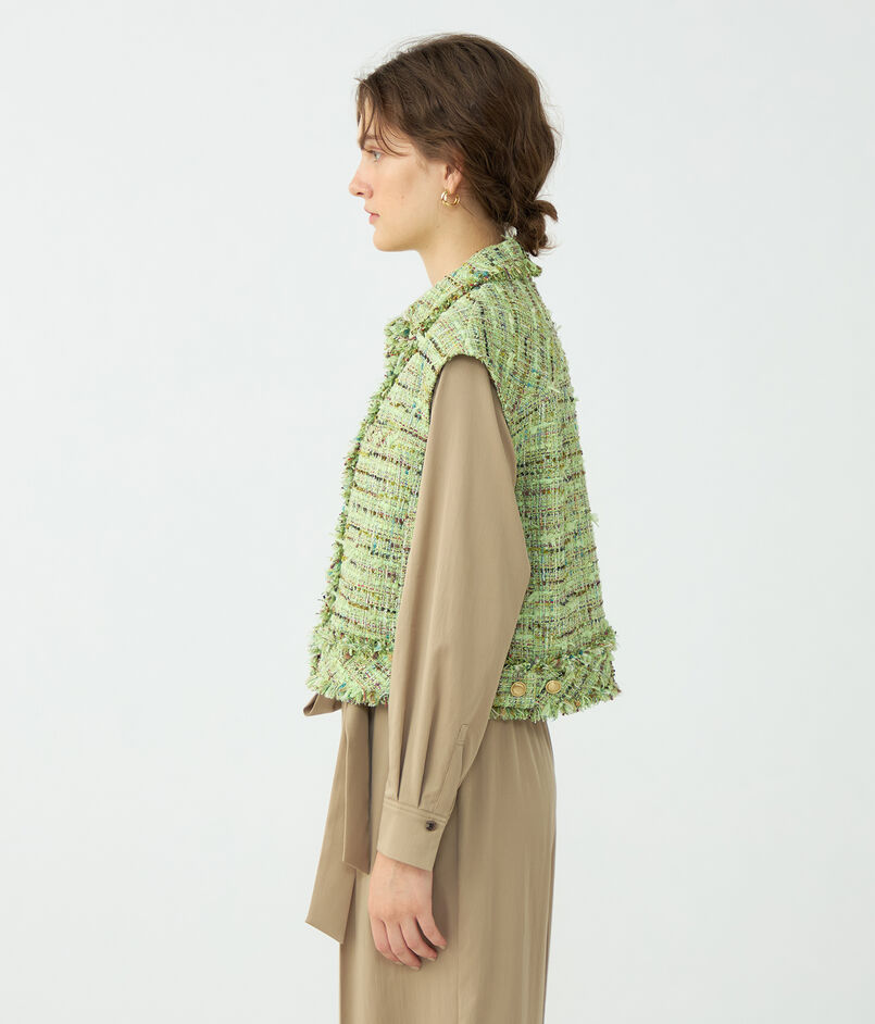 鮮やかで上品なミントグリーンが目を惹くツイード素材を使用したジレ。