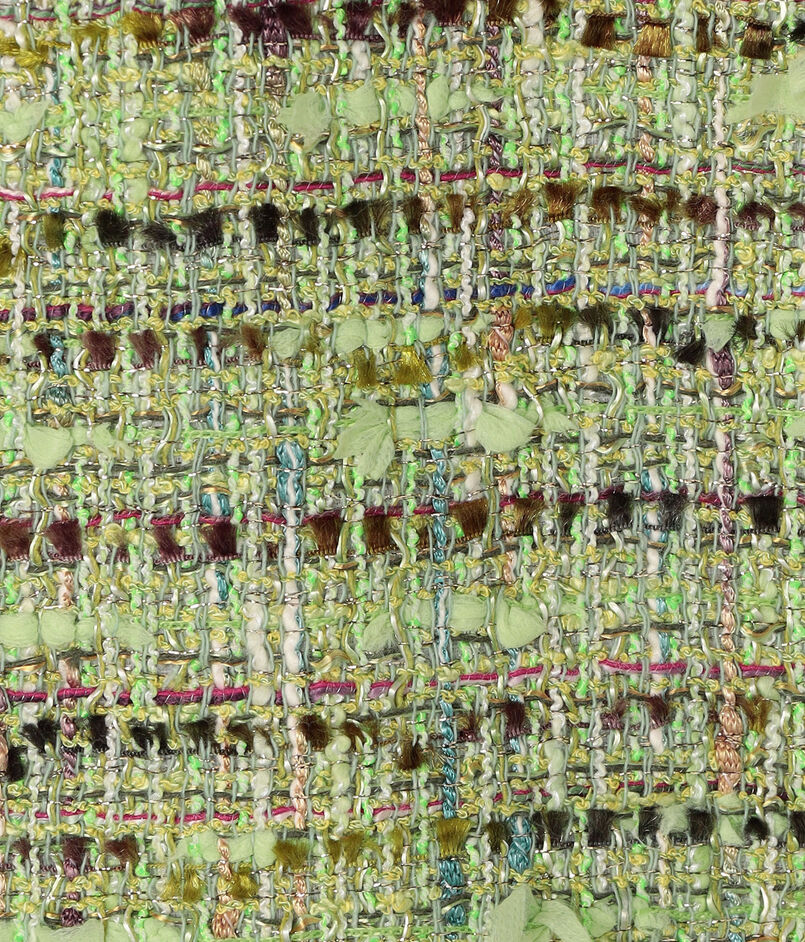 かすり染めや杢・ラメなどの意匠糸のみを贅沢に使用し織り上げた、イタリアのテキスタイルメーカーのツイードを使用しています。