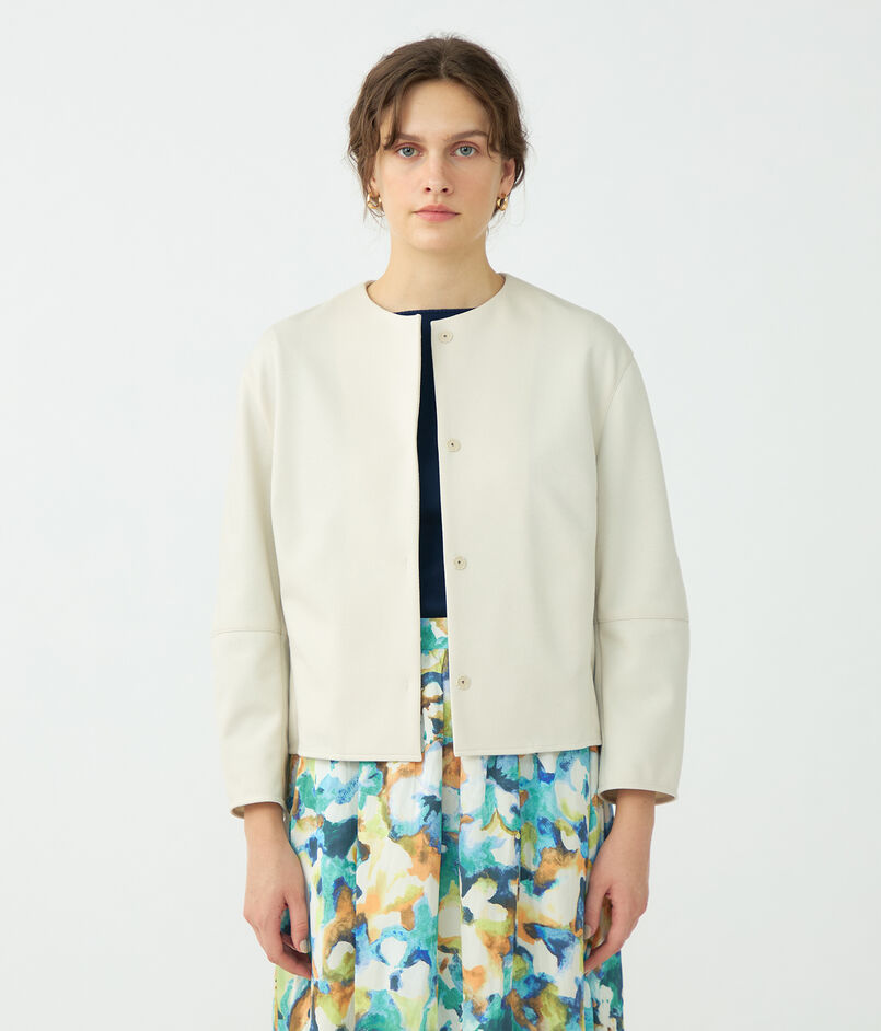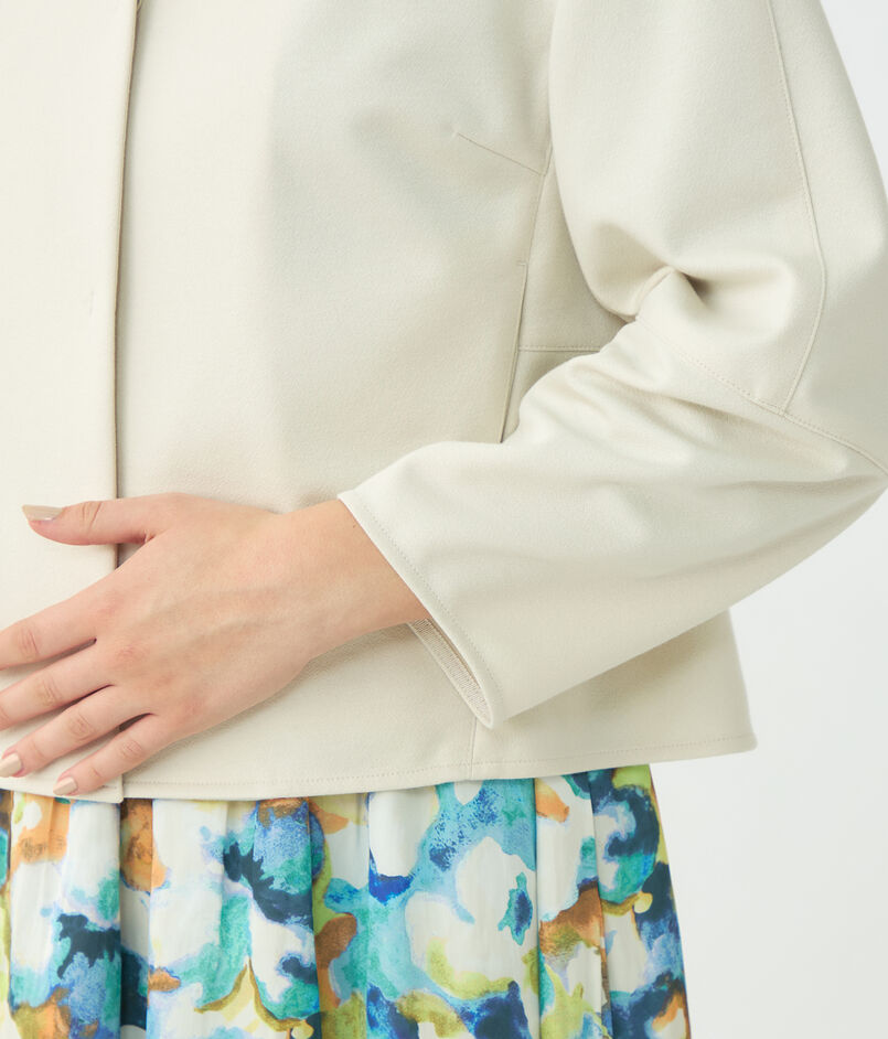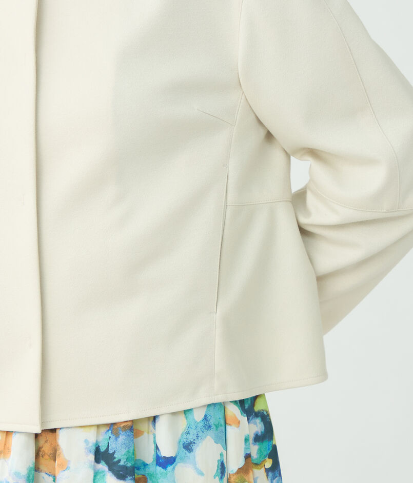 立体的なフォルムがポイントのジャケットは、丸みのあるスリーブや高め位置のバックペプラムで上品な着こなしが決まる一着。
