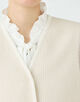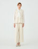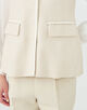 形状と光沢の異なる糸を織り交ぜて組織感を出し、細番手のファンシー糸を織り込むことでベーシックながらも高級感のある素材に仕上がっています。