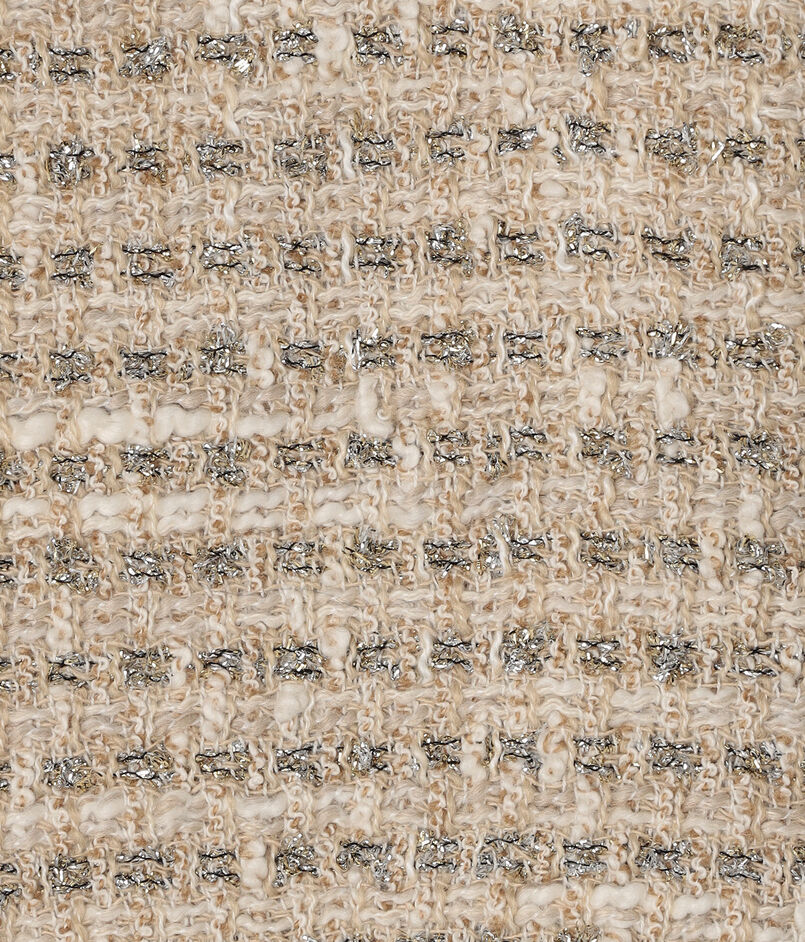 ラメ糸と杢糸を甘めにざっくりと織ることで立体的な表情を生み出しています。