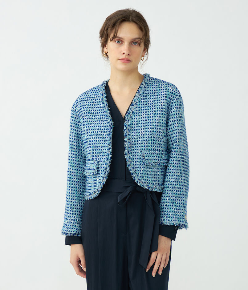 イタリアのファブリックメーカーの華やかなツイード素材を使用したジャケット。