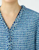 フリンジとブレードをMIXしたテープを襟から裾にかけてあしらうことで、全体をきりっと引き締めつつ華やかさをプラスしています。
