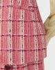 深く熟したチェリーレッドと情熱的なルビーレッドのベースにに温かみのあるベージュやオレンジの糸を織り込み、さらに透明なラメや細いリボンが繊細な輝きを加えています。