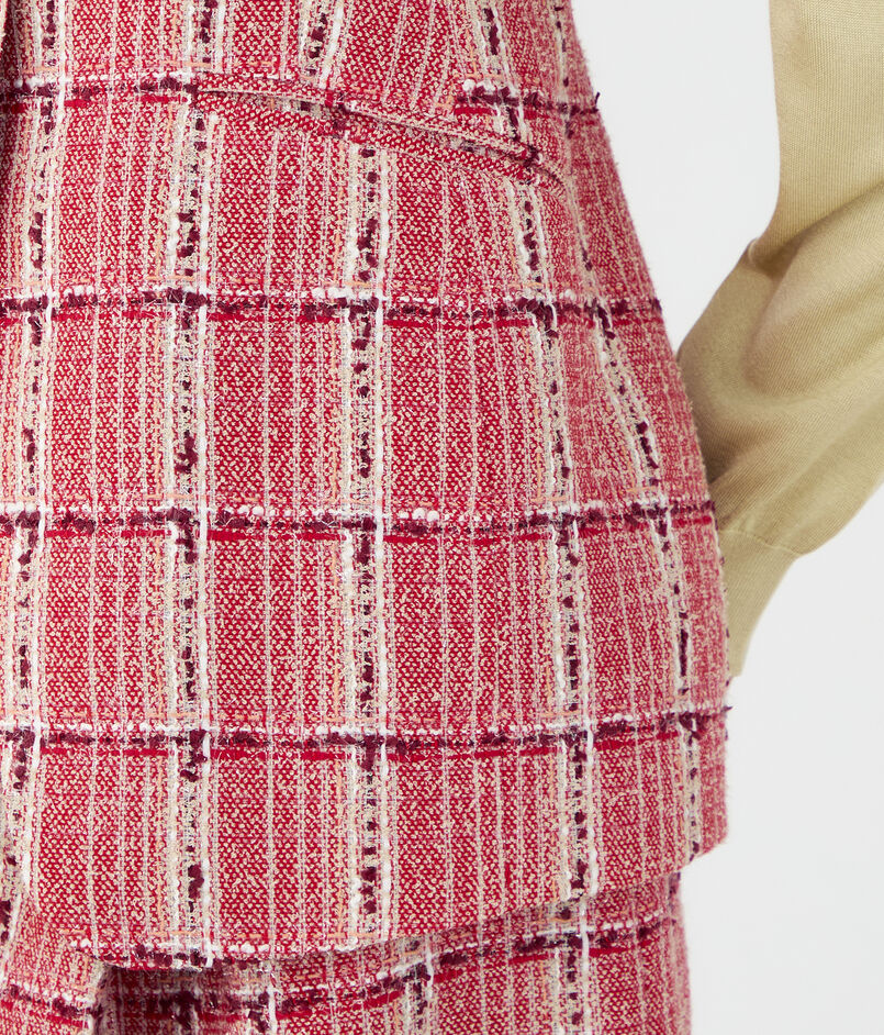 ブラウスやワンピースとのきれいめなスタイリングはもちろん、デニムなどを合わせてカジュアルダウンして着こなすのもおすすめです。