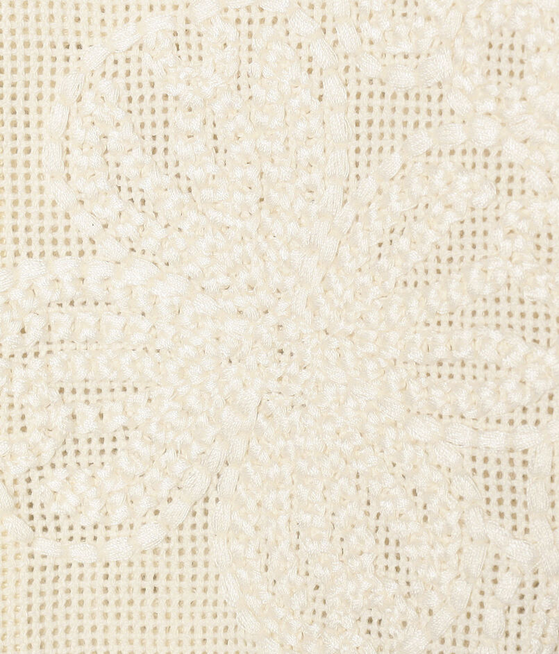 春らしい透け感とほど良いハリ感が特徴のメッシュ生地をベースに、フラワーモチーフを大胆に刺繍したジレ。