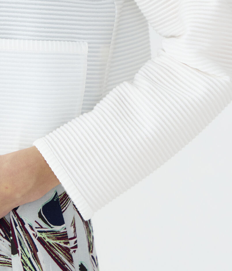 表面に凹凸のあるリップル生地に特殊な加工を施すことで適度なハリ感をプラスしています。