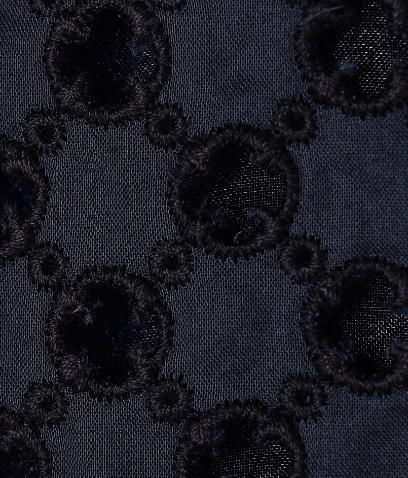アイレット刺繍の生地で仕立てられたジャケットは新鮮な印象の一着。