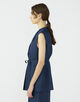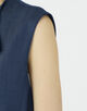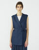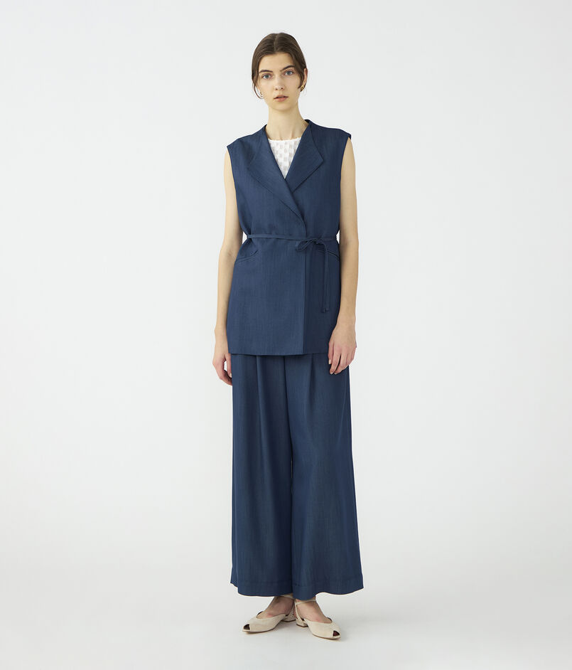 キュプラの落ち感を活かした、上品なツヤ感のあるデニムライクな素材を使用したジレ。