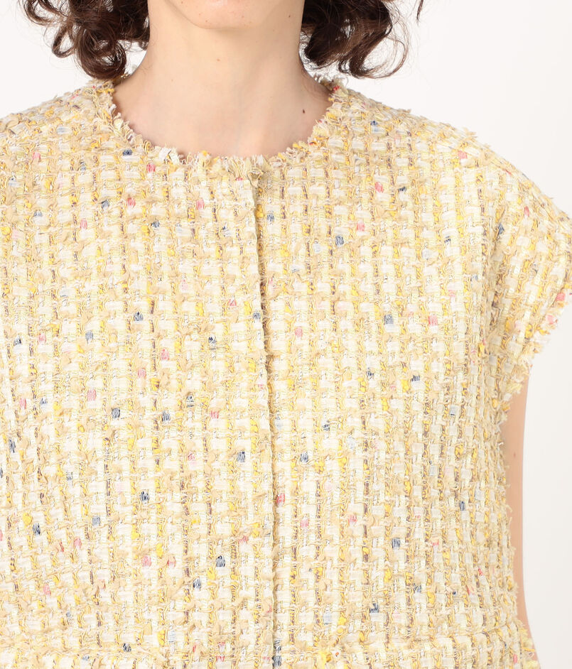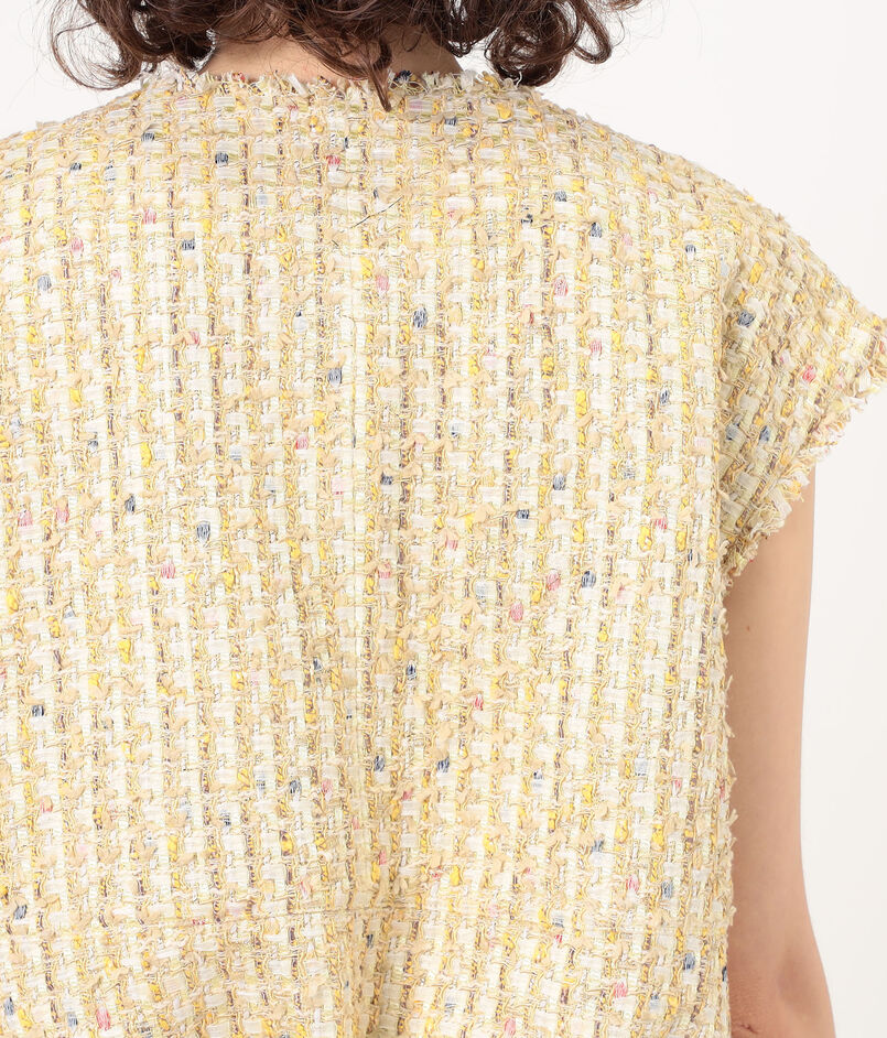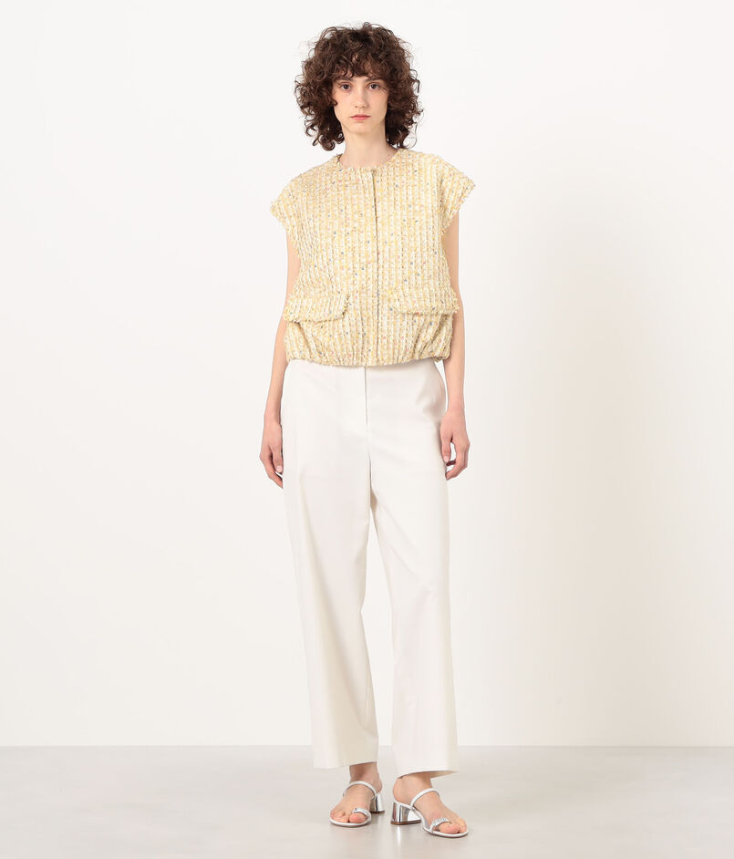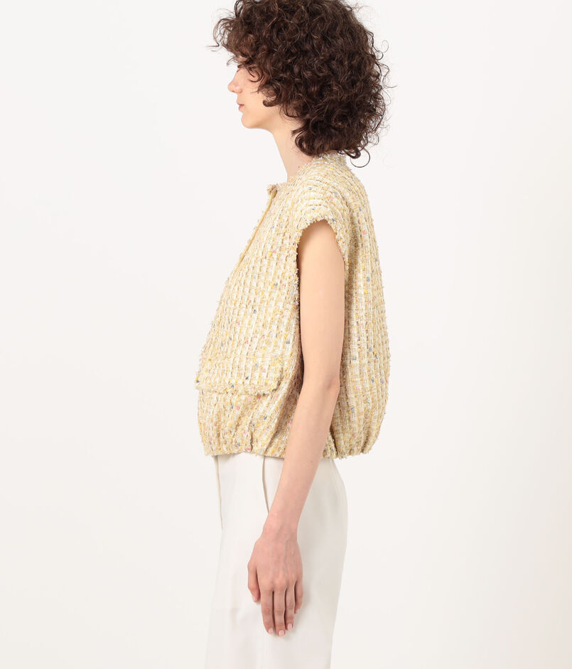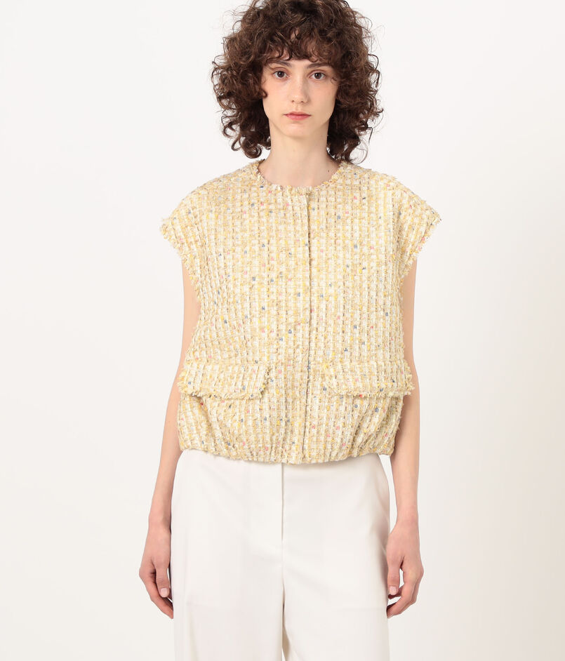 イタリアのファブリックメーカーのツイードをベースに繊細なラメ糸を織り交ぜた、〈Ballsey〉別注素材のファンシーツイードを使用したジレ。