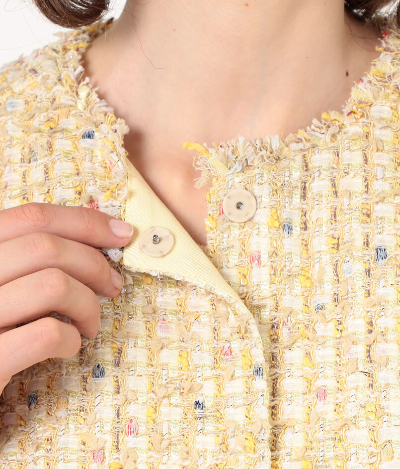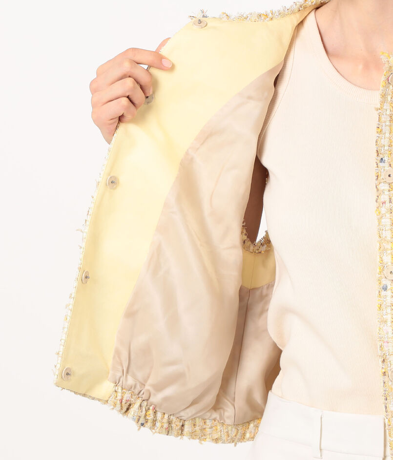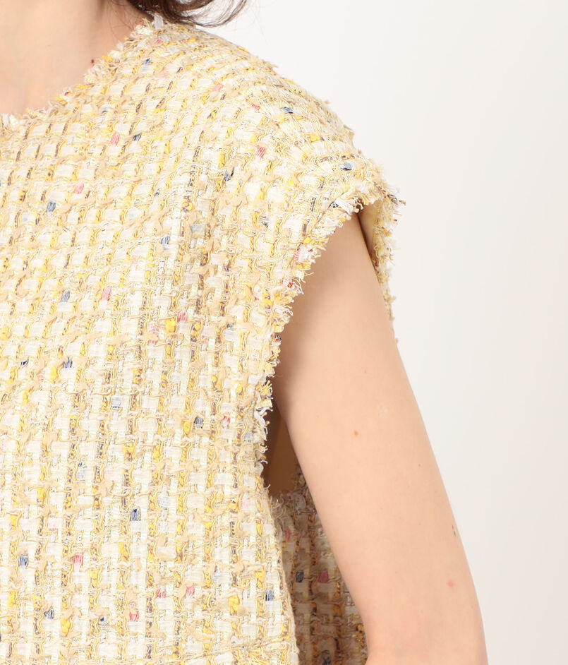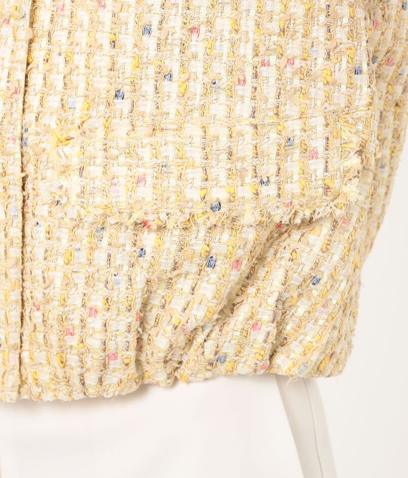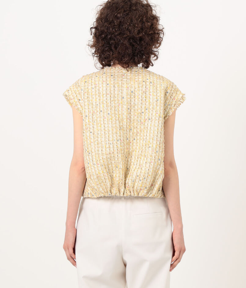 イタリアのファブリックメーカーのツイードをベースに繊細なラメ糸を織り交ぜた、〈Ballsey〉別注素材のファンシーツイードを使用したジレ。