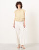 裾にギャザーを寄せてブルゾンのようなニュアンスを持たせたショートジレ。
