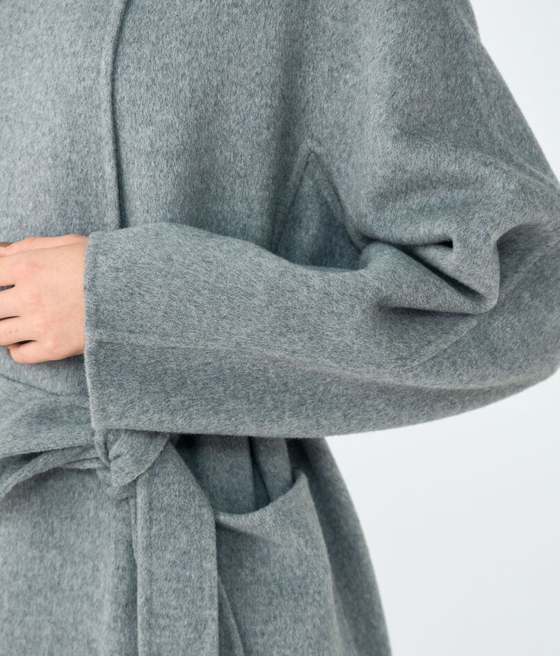 フロントを開けてラフに羽織るのはもちろん、付属のウエストベルトをきゅっと結んですっきりとしたシルエットで着こなすのもおすすめ。