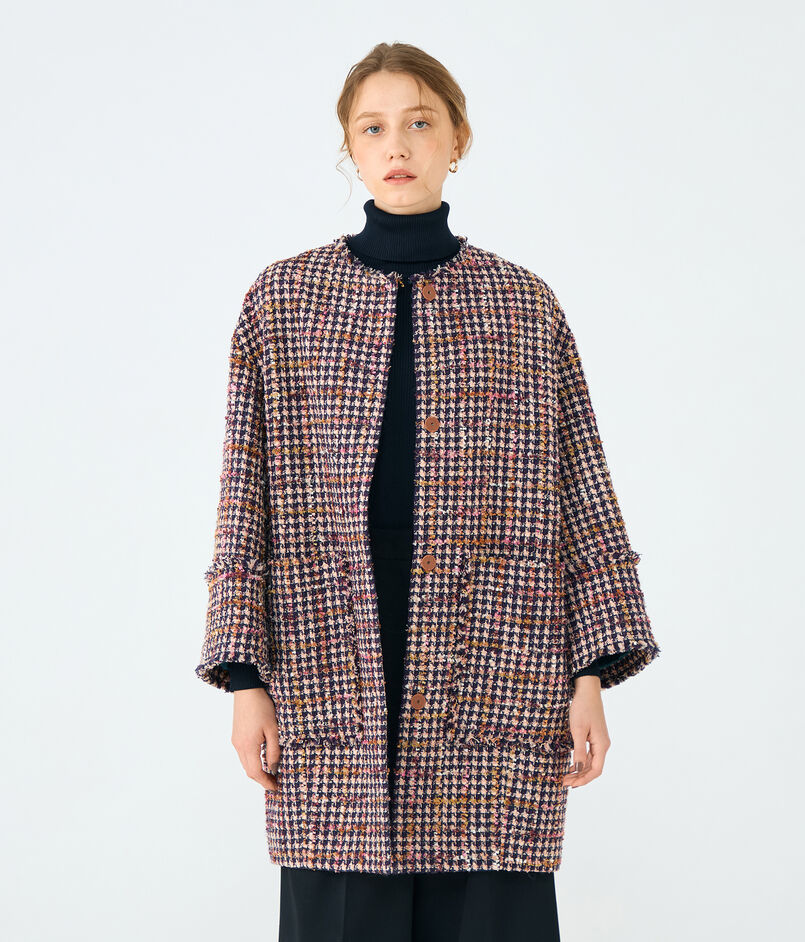 イタリアのテキスタイルメーカーのツイード素材を使用したコート。