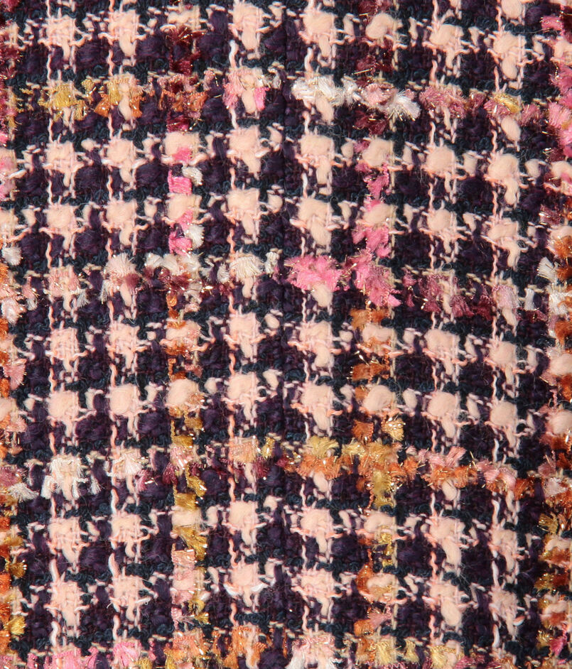 形状の異なる数種類の糸を使用することで独特な凹凸とミックス感を表現し、織り込まれた細いラメ糸が上品な光沢感をプラスしています。
