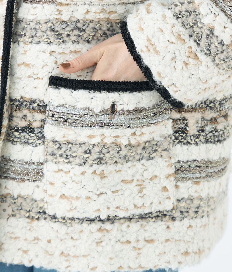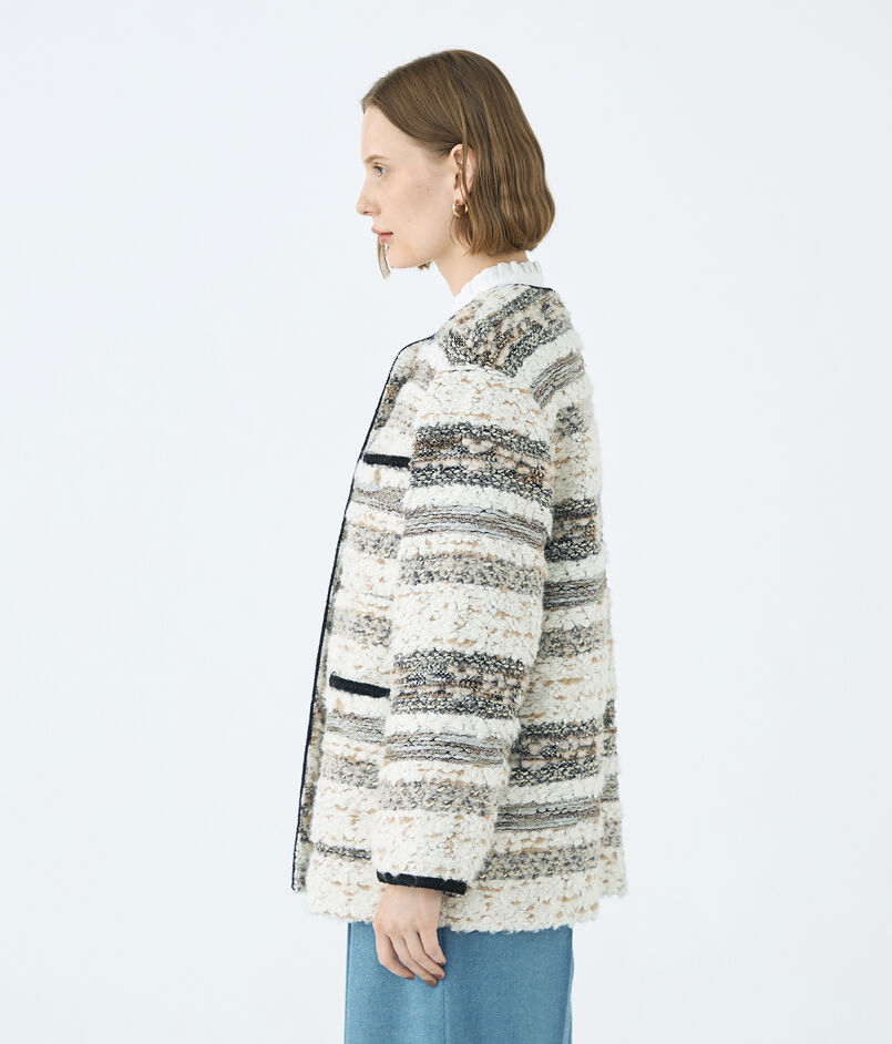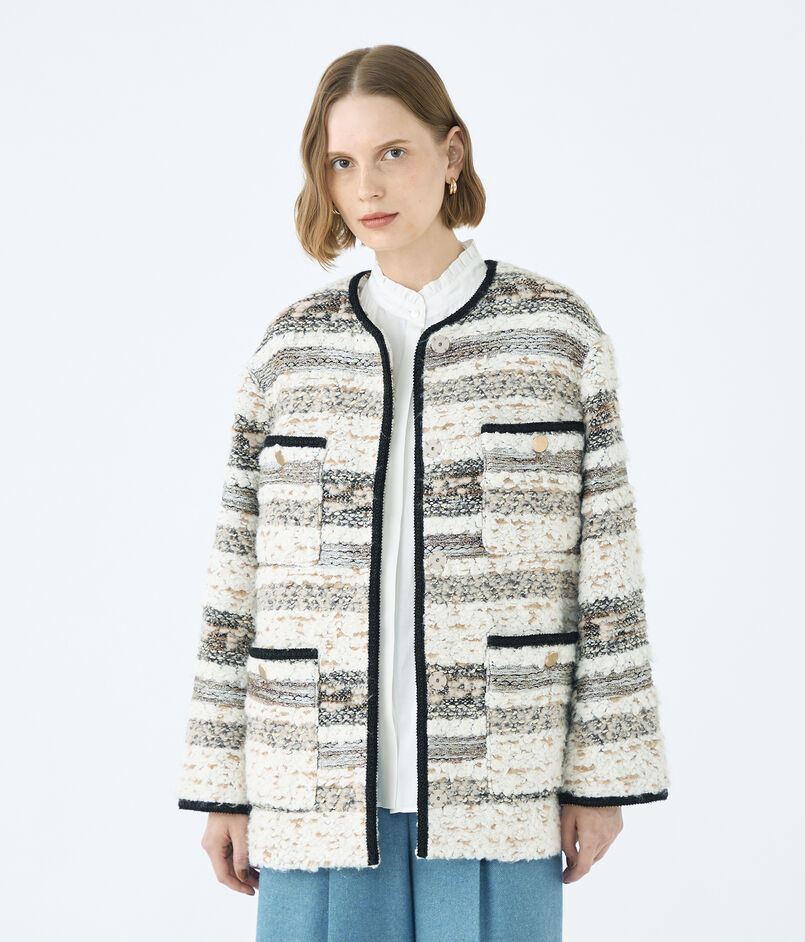 イタリアのファブリックメーカーの意匠ニットツイード素材を使用したコート。