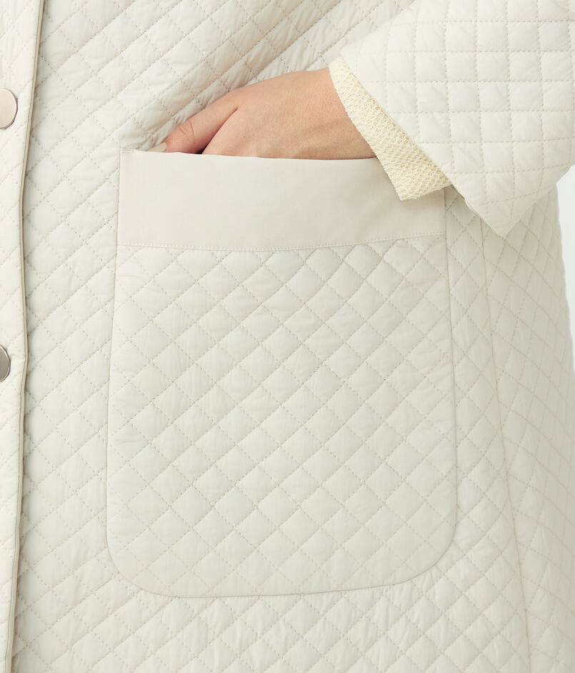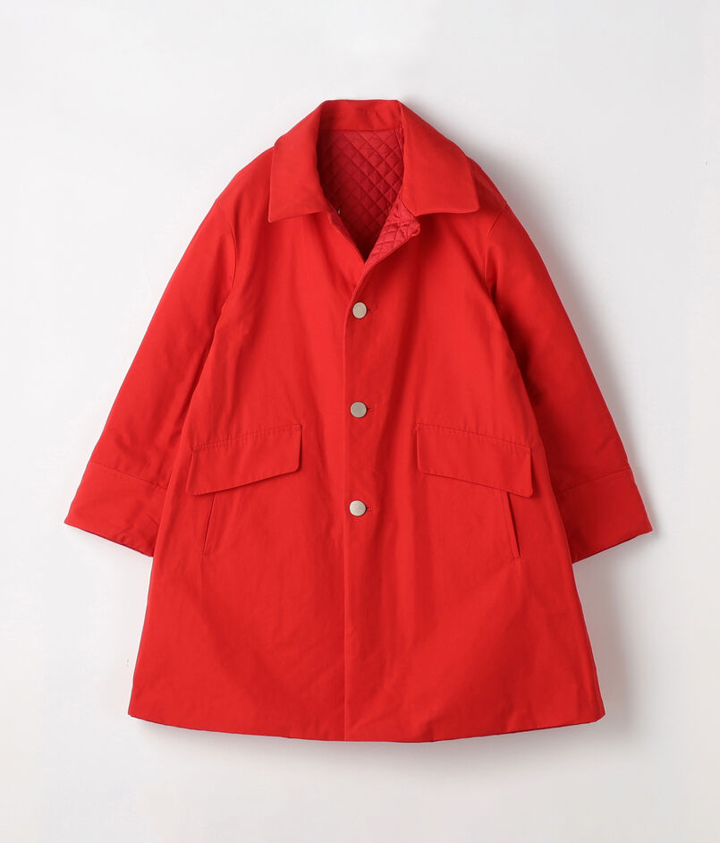 キルティング面と春らしいタッサー面の両方を楽しめるリバーシブルコート。