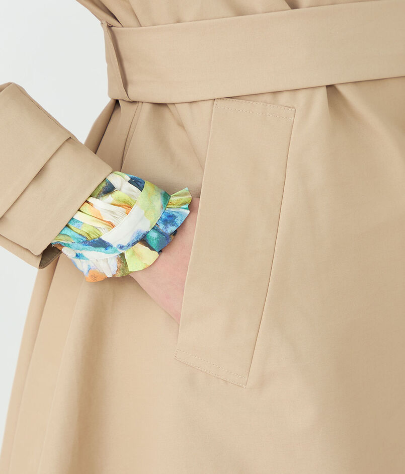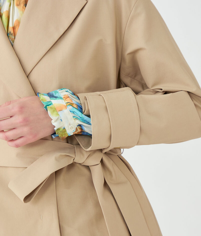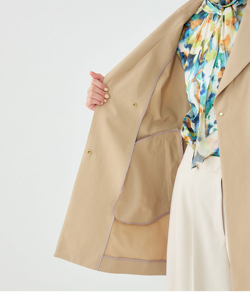 良質なコットン糸とリサイクルナイロン糸で織り上げた、サステナブルなグログラン生地を使用したコート。