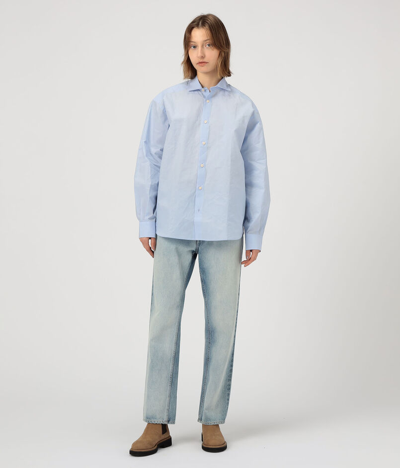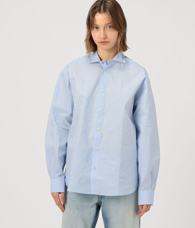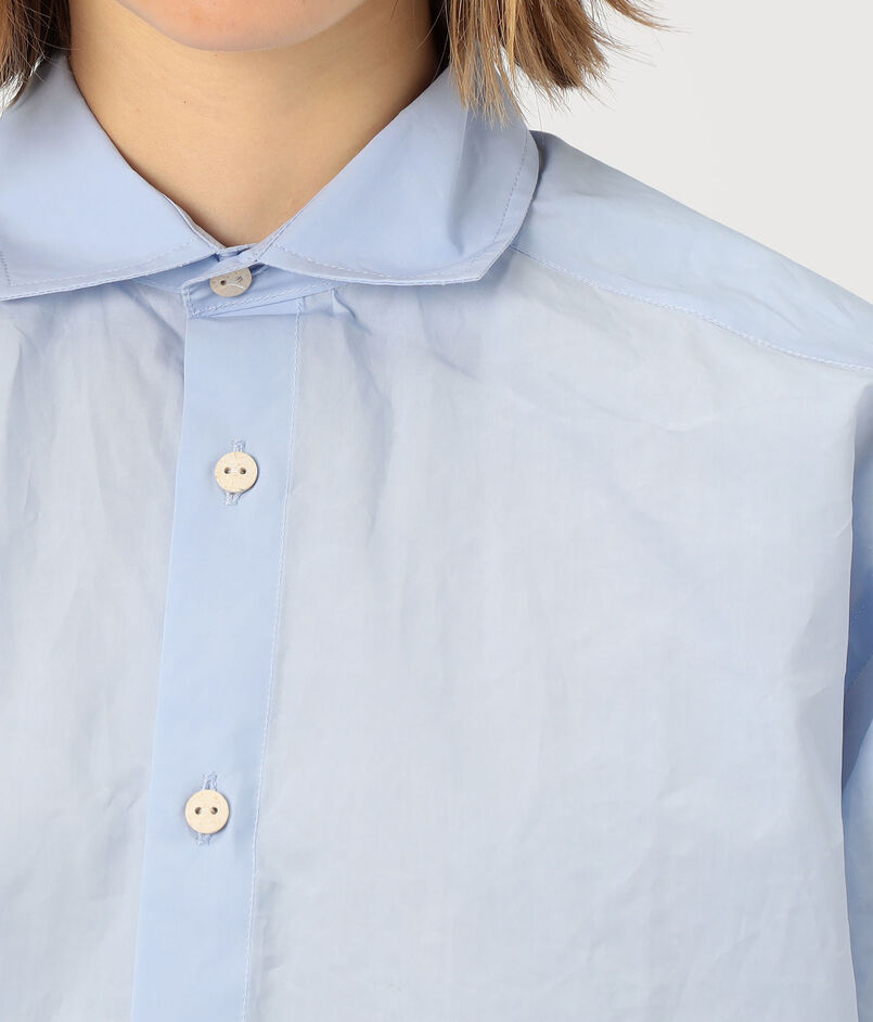 さらりとしたタッチが魅力のコットンポプリン素材を使用したシャツ。