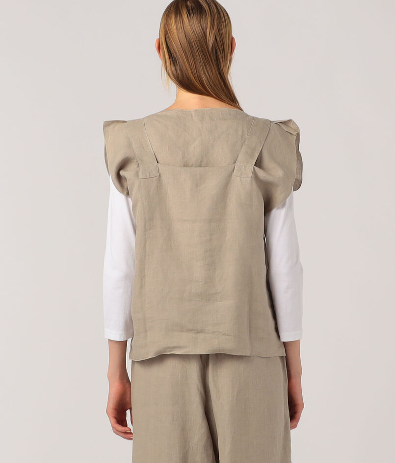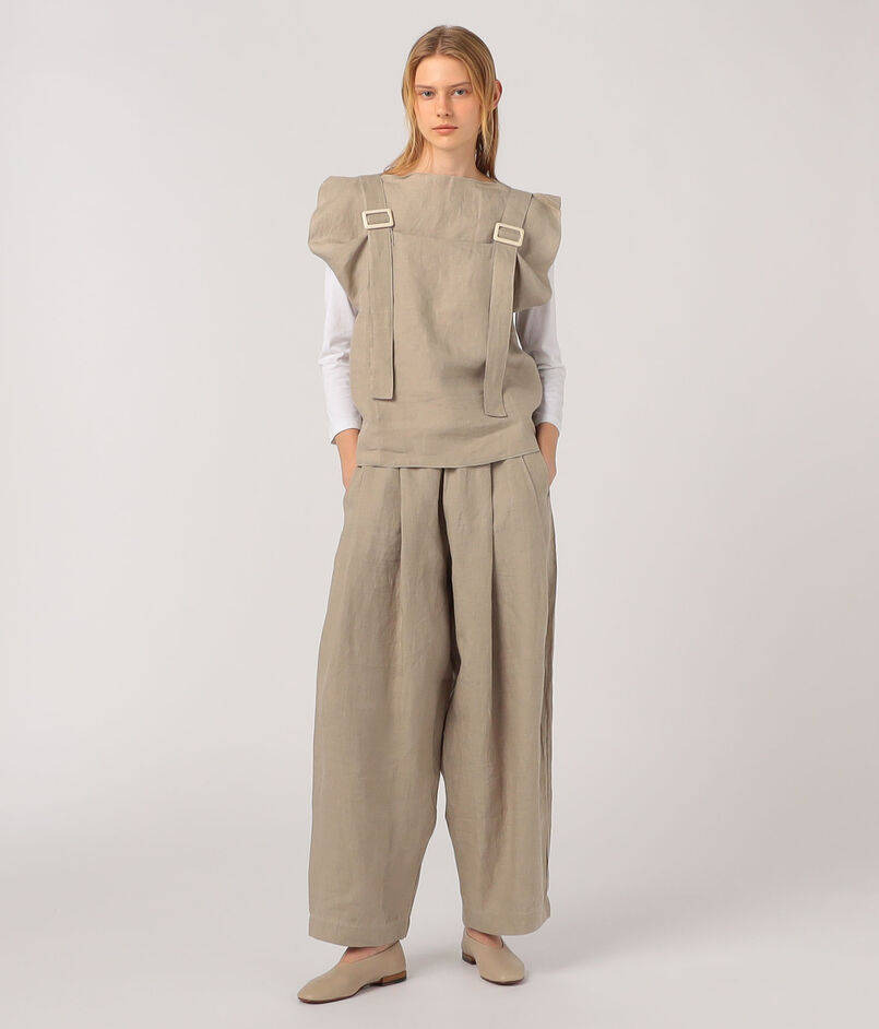 さらりとしたタッチのヘンプ素材を使用したトップ。