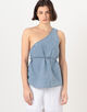 シルクとオーガニックコットンを使用したデニム素材のトップ。