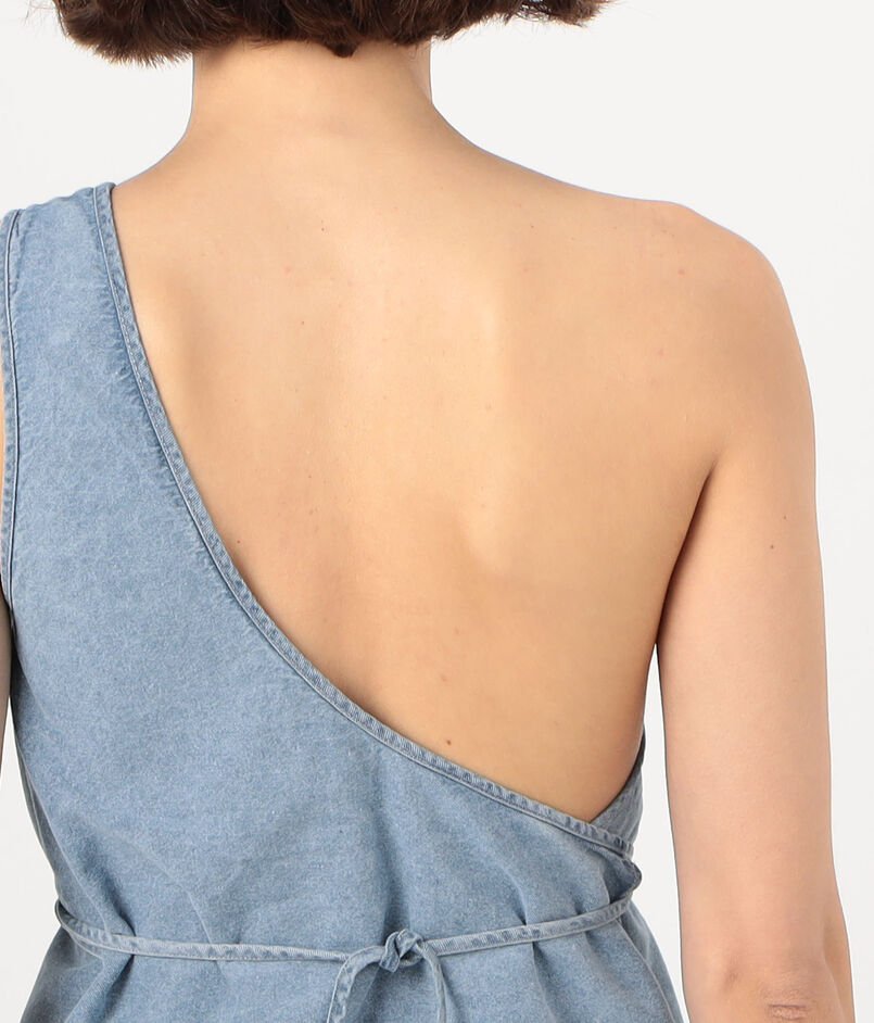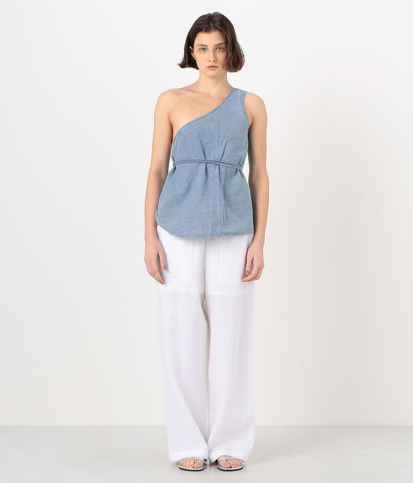 BASERANGE EYE TOP コットンシルクデニム ワンショルダートップ