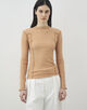 ボートネックのネックラインと、ほど良くフィットするサイズ感が身体を美しく見せてくれるカットソー。