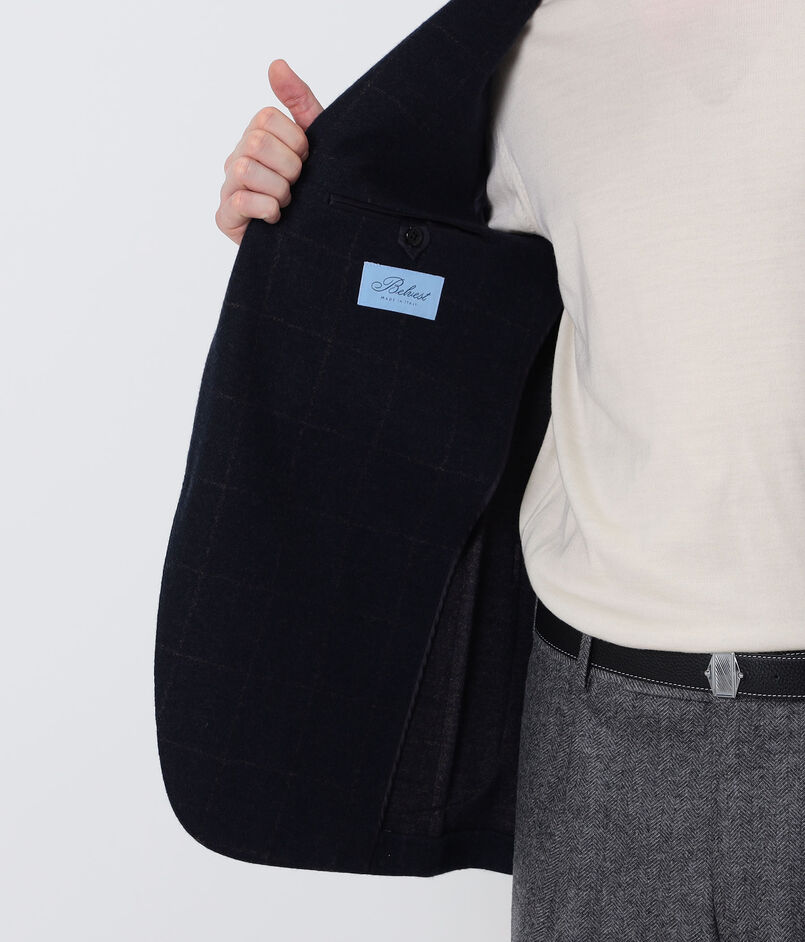 マシンメイドを基本としながら、スーツの要となる箇所はハンドワークを用い、ソフトで軽い着心地を追求、肩や腕周りの独特のフィット感はBelvestの代名詞となっている高級スーツの代名詞的存在。