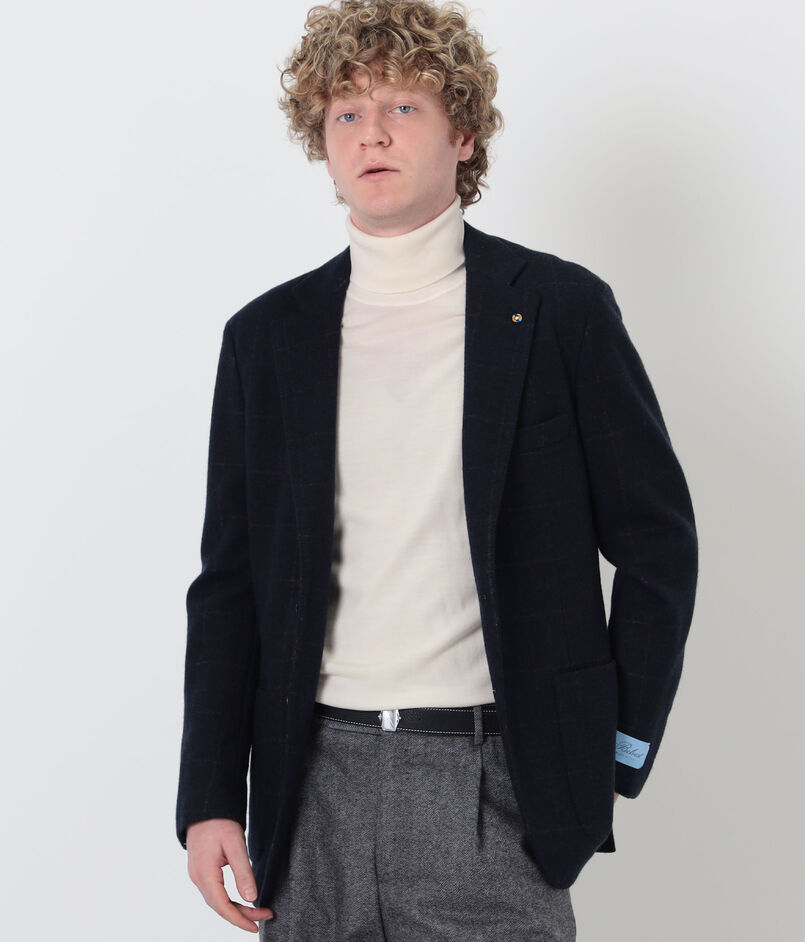 Belvest ウール ウィンドウペーン シングルブレステッド2Bジャケット