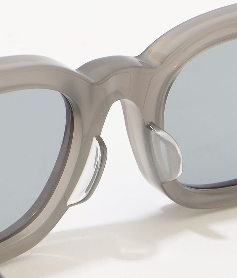 肉厚でヴィンテージライクな技法を使ったスクエアウェリントンモデルですが、縦幅と角を抑えたレンズシェイプにより、厚めのフロントの存在感を中和してくれるため、存在感はあるのに合わせやすく、使いやすい雰囲気に仕上がっています。