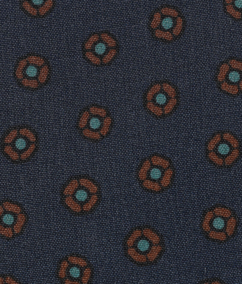 落ち着いた配色の小紋柄が特徴のシルクプリントネクタイ。