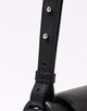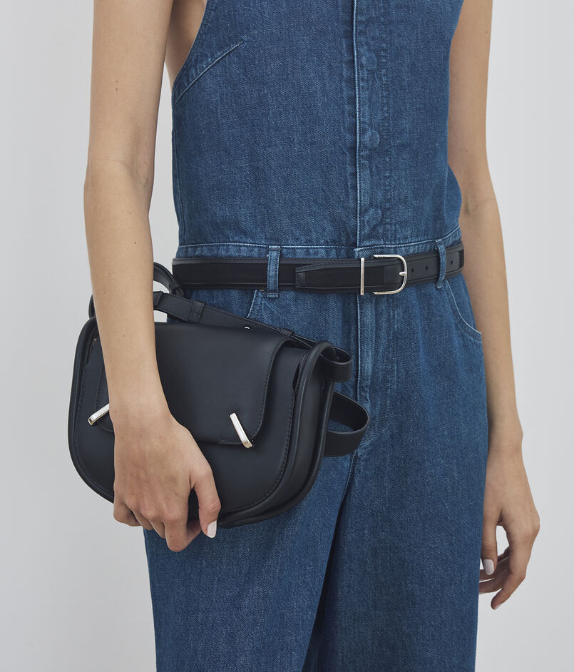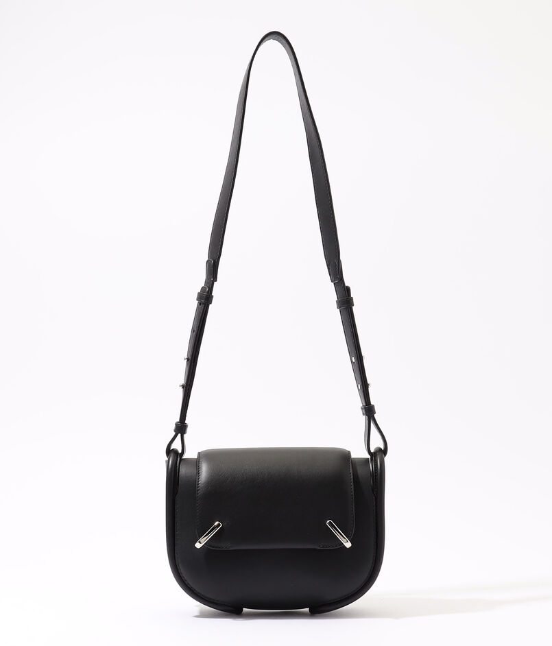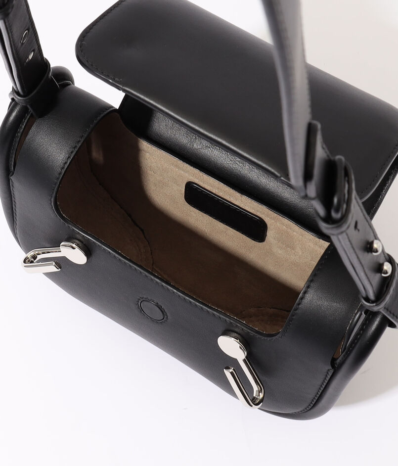 表地はきめの細かいカーフスキンレザーを使用し、フラップを固定するために配されたシルバーのフックがさりげないデザインポイントになっています。