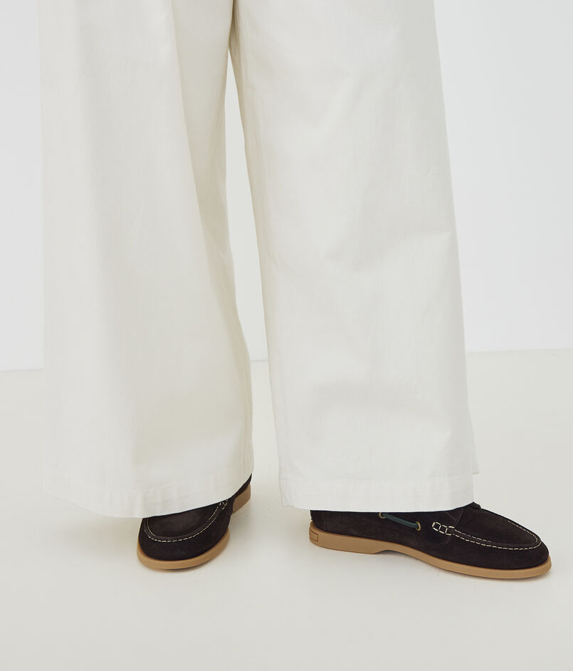 やわらかなスエード素材のボートシューズ。