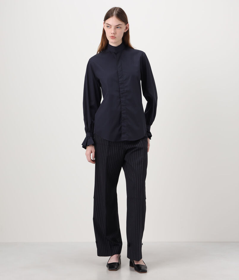 コンパクトな襟元と、少し膨らみを持たせた袖口をフリルで仕上げた、フレンチシックの象徴のようなエレガントなモデル、『BOUDOIR』。