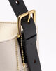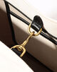特徴的なショルダーストラップはブライドルレザーのベルトで仕立てられ贅沢な仕様。