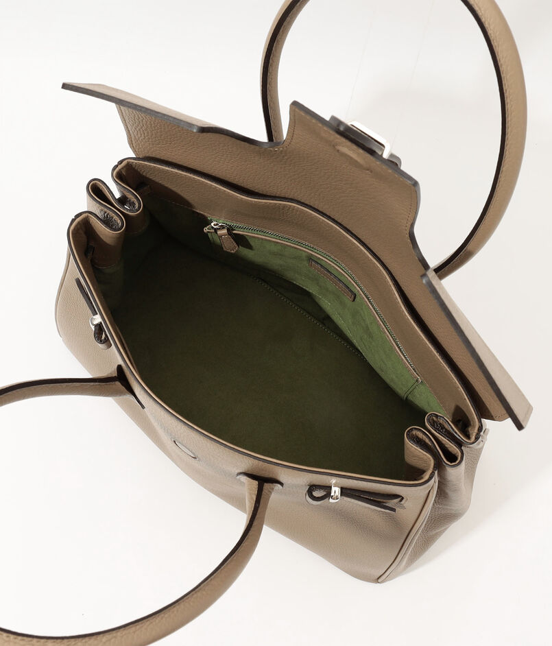 ベルトをバッグと同様のシュリンクレザーに、金具をゴールドからシルバーに変更し、柔らかな質感と高級感をプラスしました。
