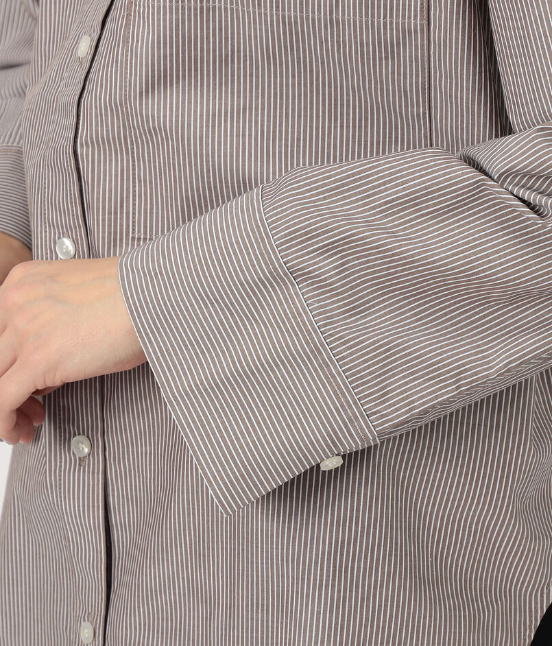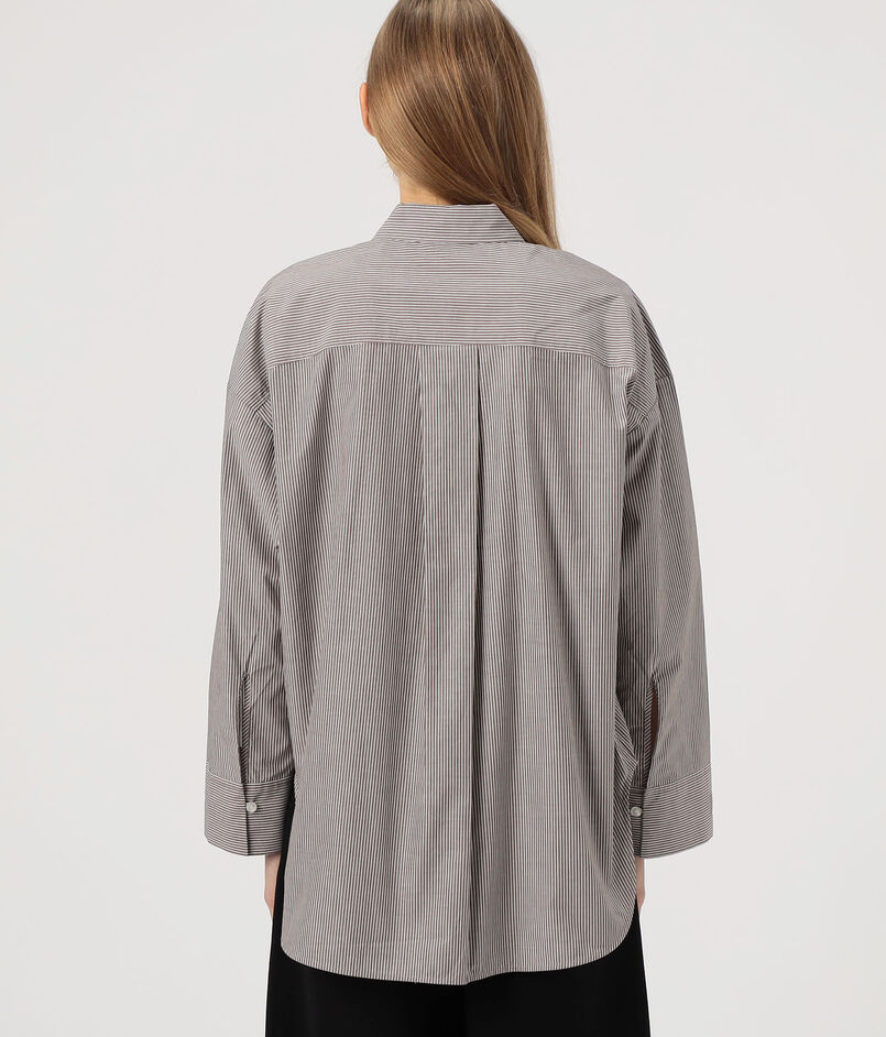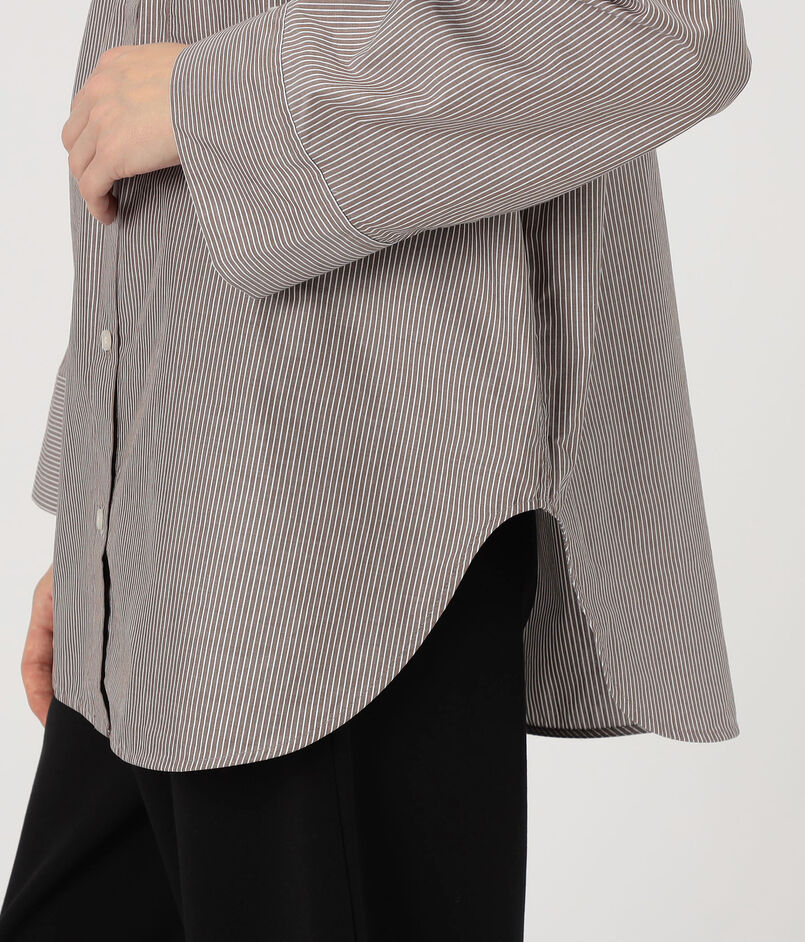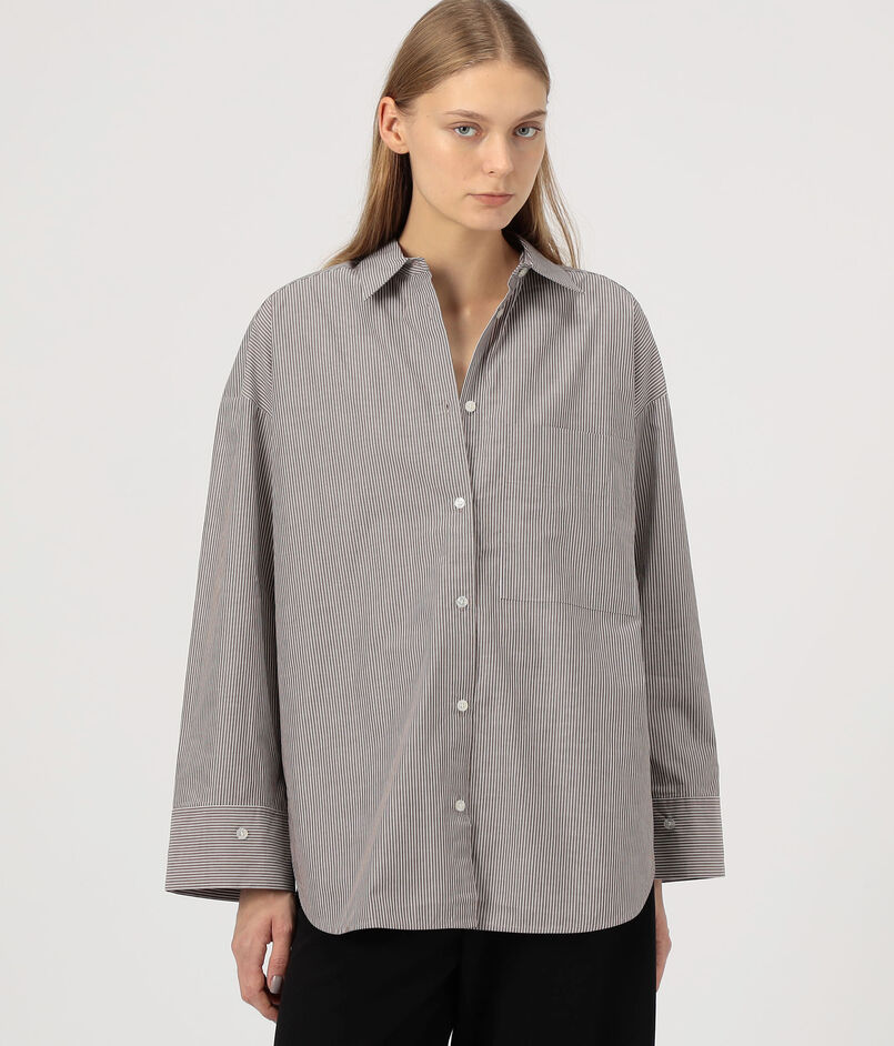 シーズンレスで活躍するシャツは、フロント全体にボタンがあしらわれ、襟はスマートなデザインです。テーラードパンツにインしたり、ボーイフレンドジーンズの上に重ね着したりと、幅広く活躍してくれるタイムレスな一着。